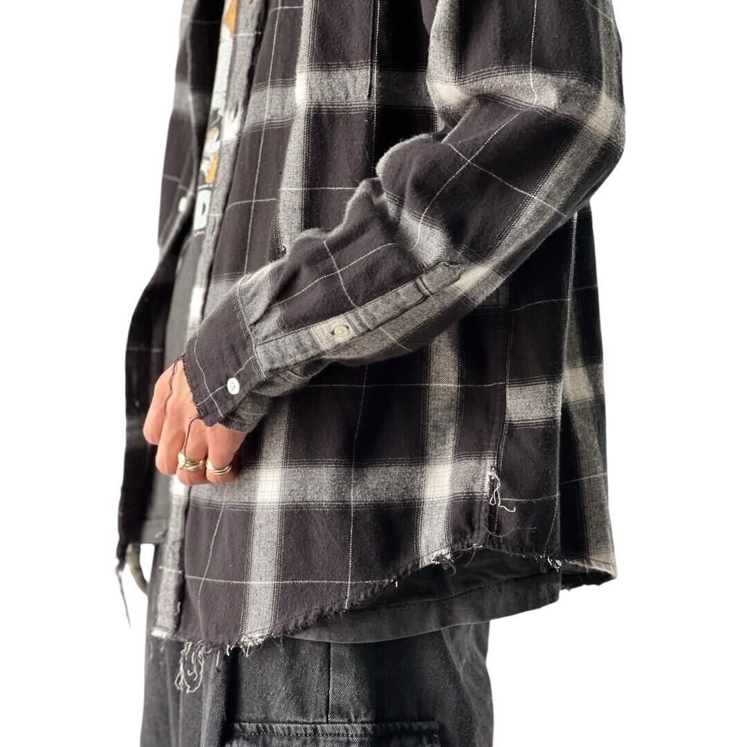 安定感抜群クールな印象の黒白チェックパターンにオンリーワンなダメージ加工によるカスタムがクールなチェックシャツ!!!!