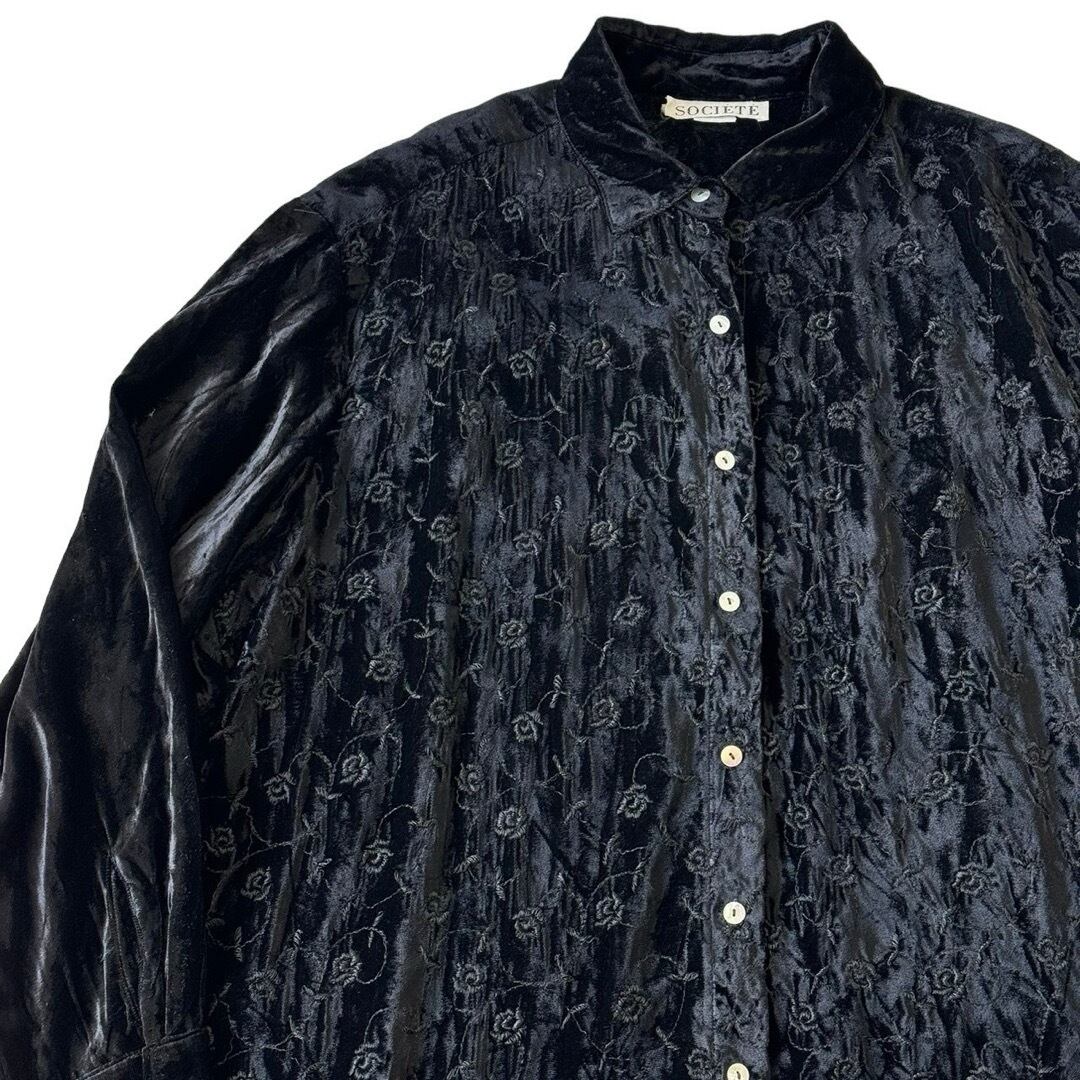 【SOCIETE】 Rose motif Embroidery design velours shirt