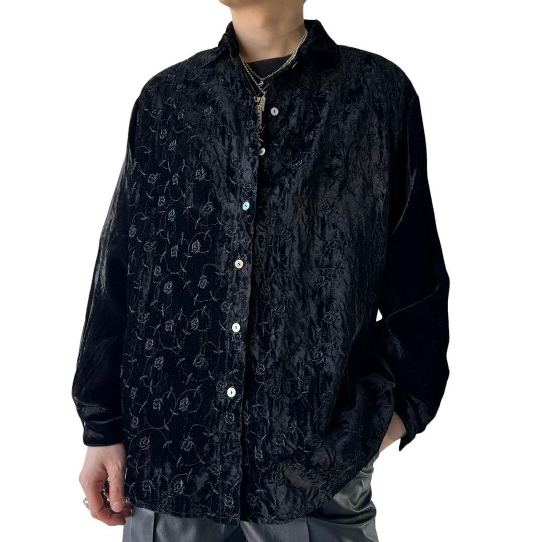 超豪華❤︎薔薇モチーフの刺繍をフロント全体に施したラグジュアリーな特徴のあるSpecialなベロアシャツ‼︎