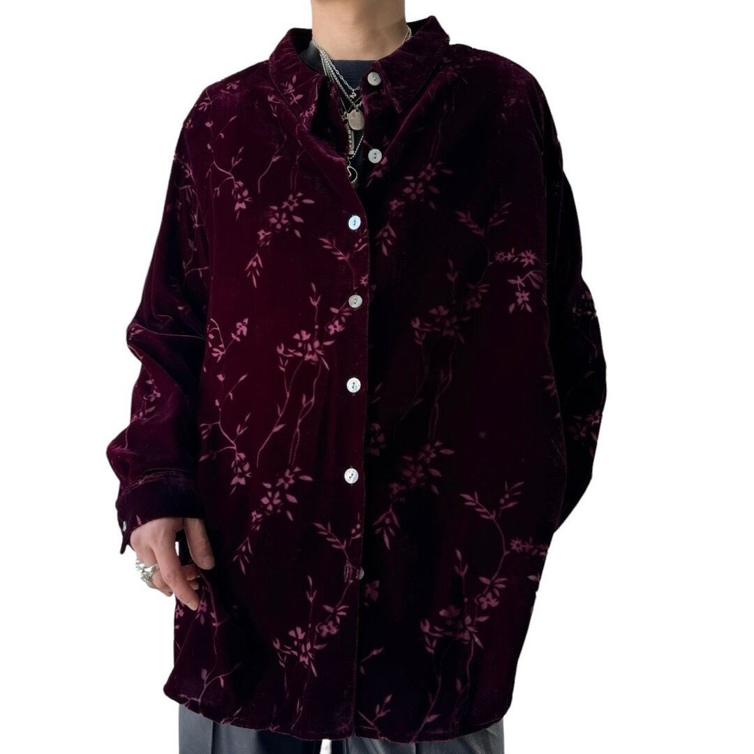 フラワーモチーフ部分がシアー素材でスウィッチングした抜群のデザイン性がバエるラグジュアリーな特徴のあるSpecialなベロアシャツ‼︎