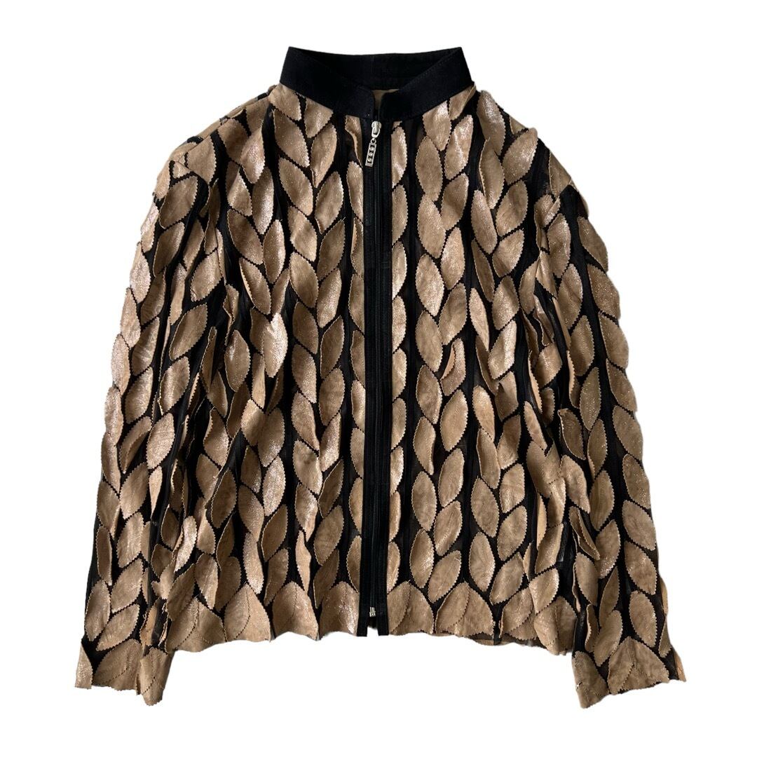 【Dakota West】Leaf pattern Genuine Leather Mesh Riders jacket -MADE IN TURKEY-