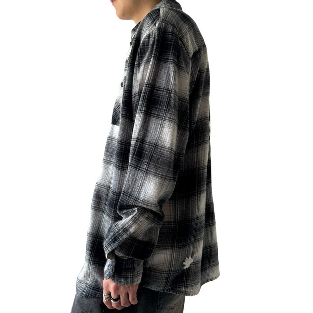 安定感抜群クールな印象の黒白グラデーションなチェックパターンにオンリーワンなハンドステッチを施したカスタムオンブレチェックシャツ!!!