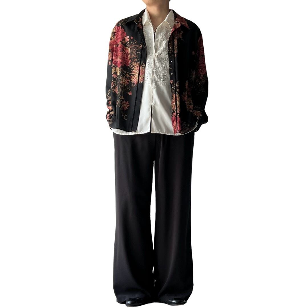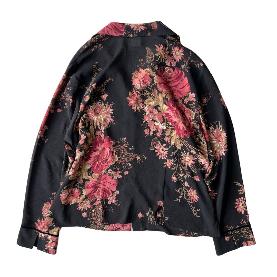 【EMMA JAMES】Art Flower pattern velours line Open collar shirt