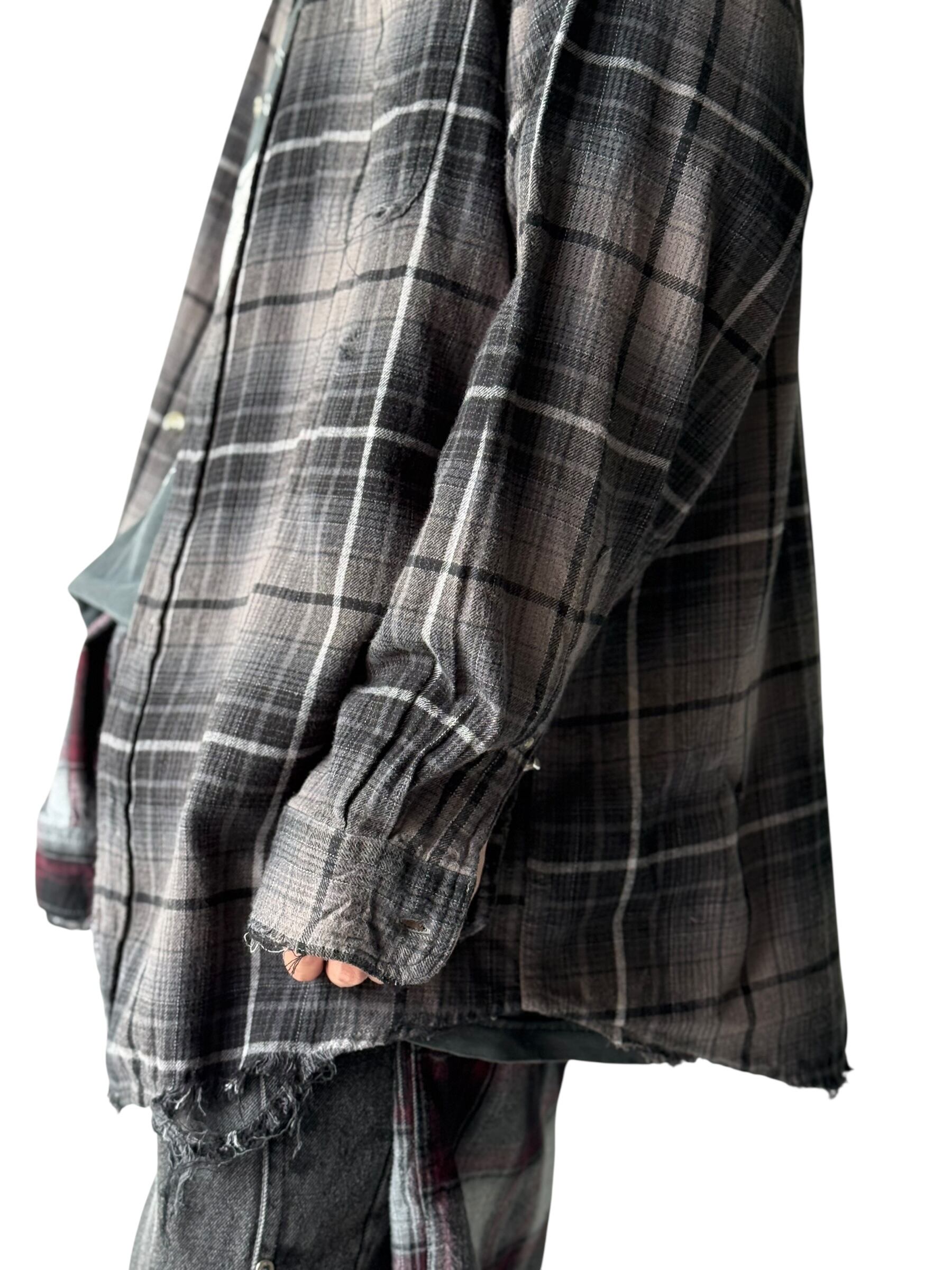 【HOBBS CREEK】Distressed Light Flannel Shadow Check Shirt