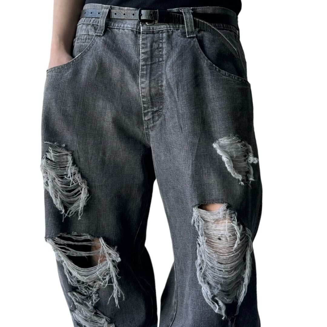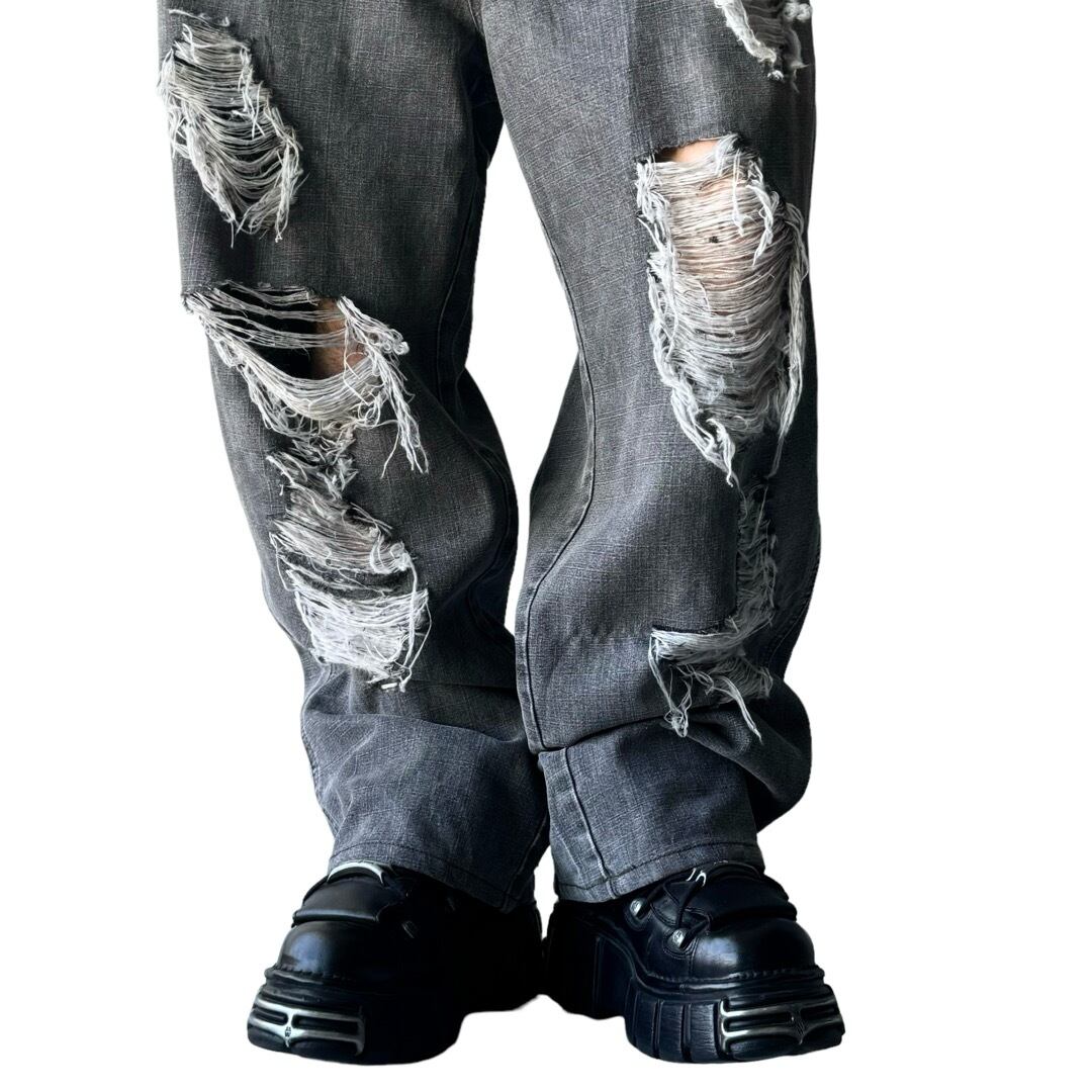 ワイドストレートシルエットが存在感抜群でクラッシュ加工を施したデザインデニムパンツ❗️