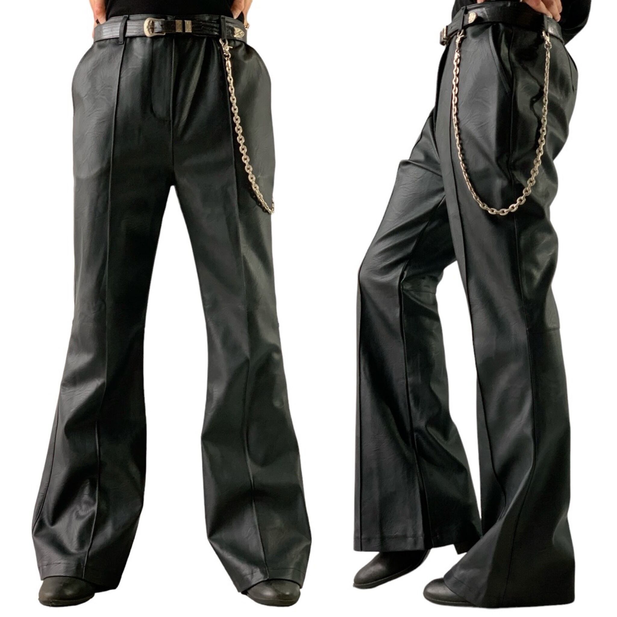 見た目がかなりリアルレザーに近いPVCレザーフレアパンツ✨