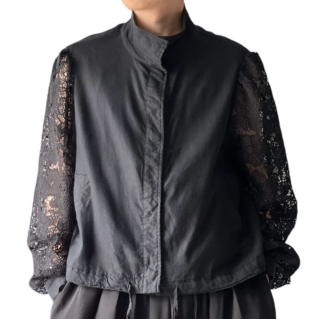 両袖のフラワーモチーフのレース切り替えが特徴的なショートレングスジャケット!!!