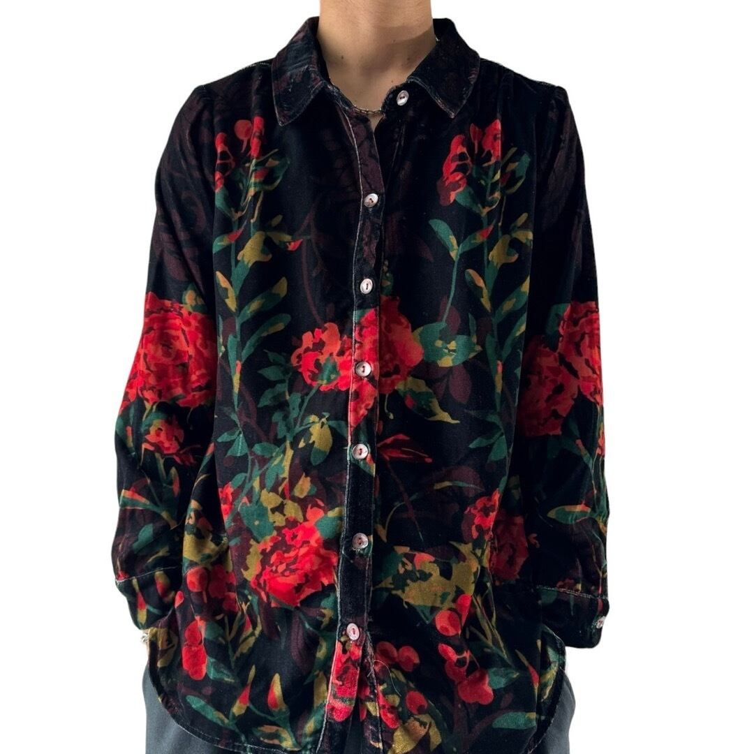 Graphic Flower Pattern Art Velours Shirt