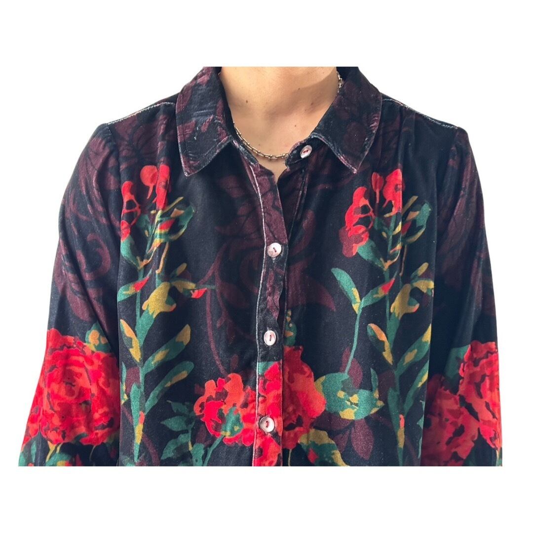 【Soft Surroundings】Graphic Flower Pattern Art Velours Shirt