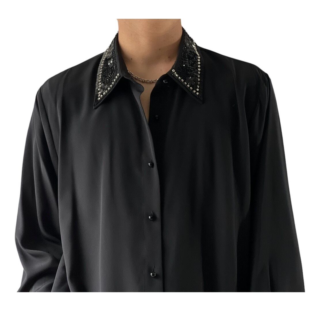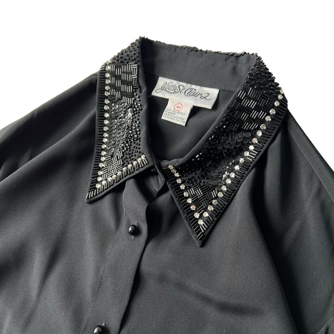 【Yves St.Clair L】Beads Decoration collar & cuffs Design shirt