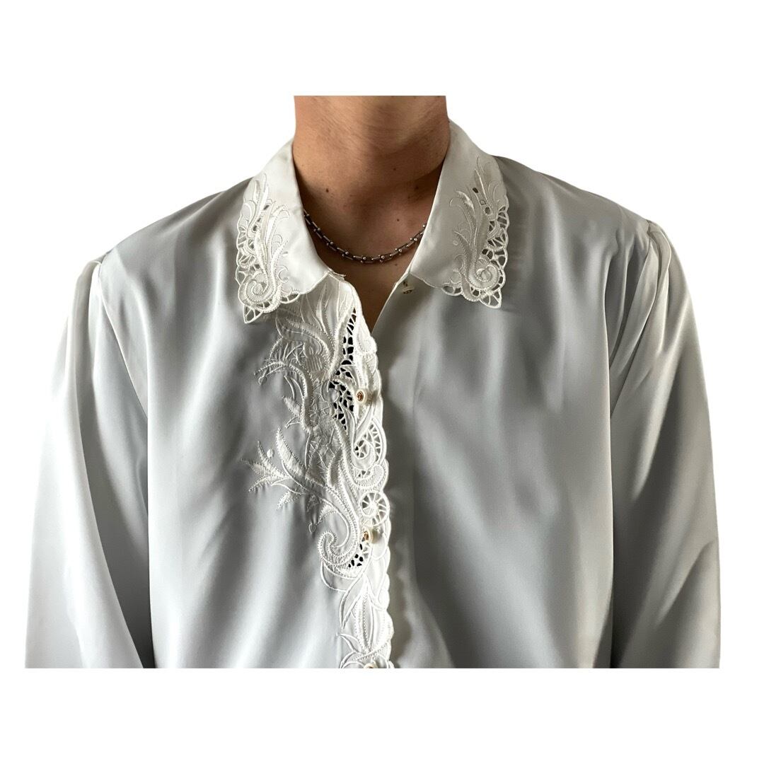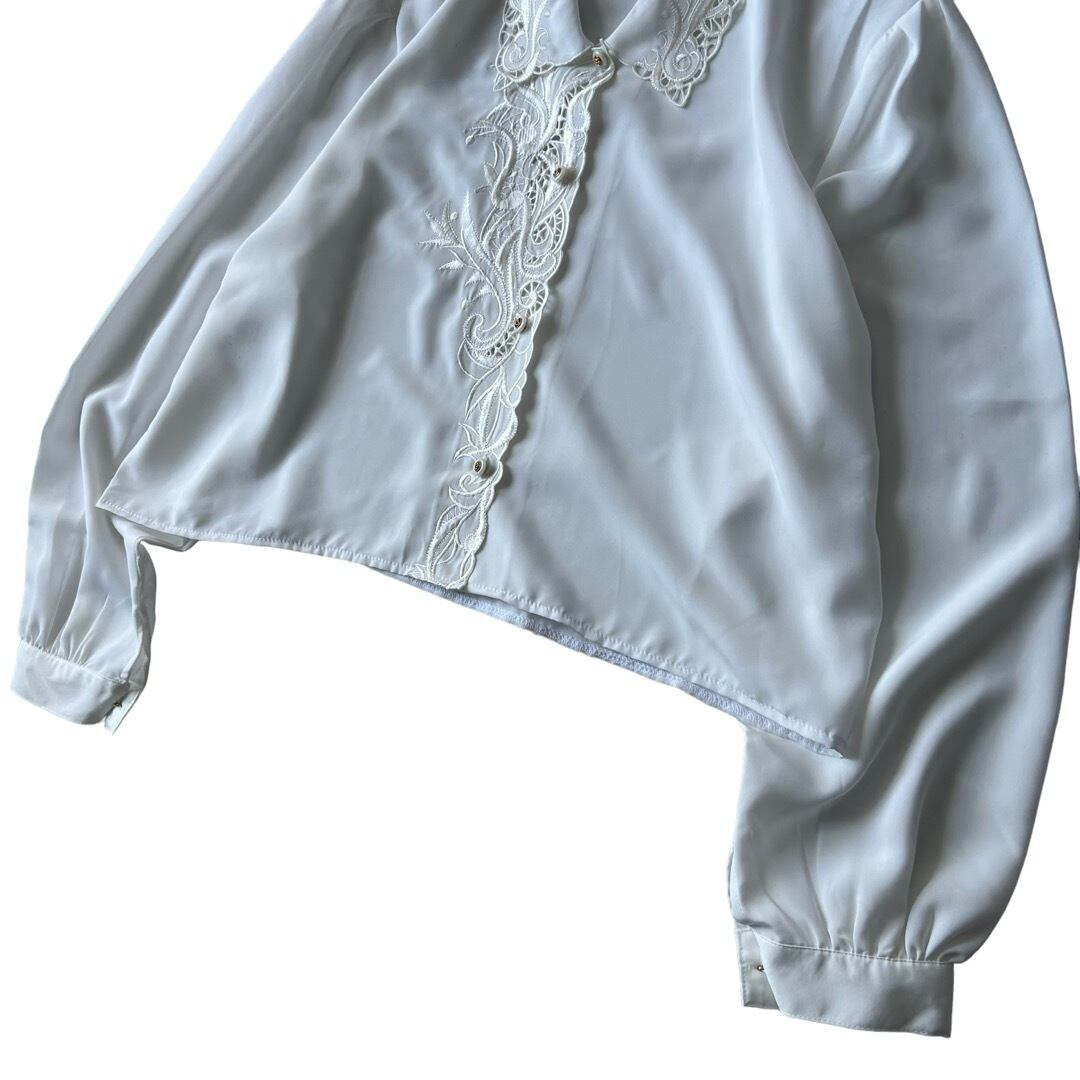 【LAFORETA】Cutwork Embroidery Decoration Design Short Dress Shirt