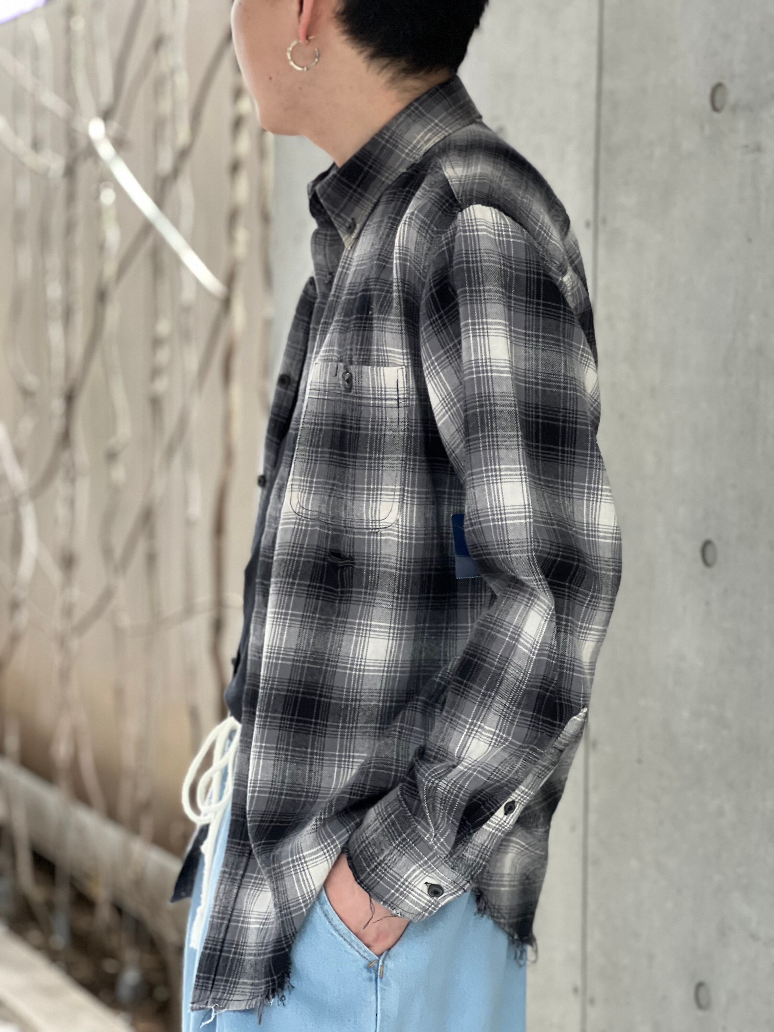 【BASIC EDITIONS】 Distressed Ombre check shirt