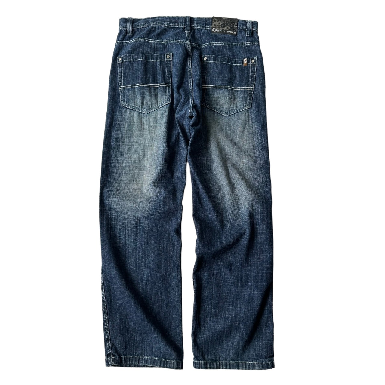 ♾SOUTH POLE♾ wide jumbo silhouette faded design denim pants size36
