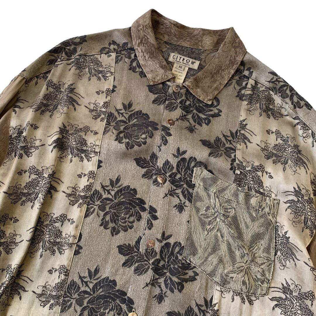 ♾️VINTAGE CITRON♾️ Design embroidery rayon shirt MADE IN U.S.A size M