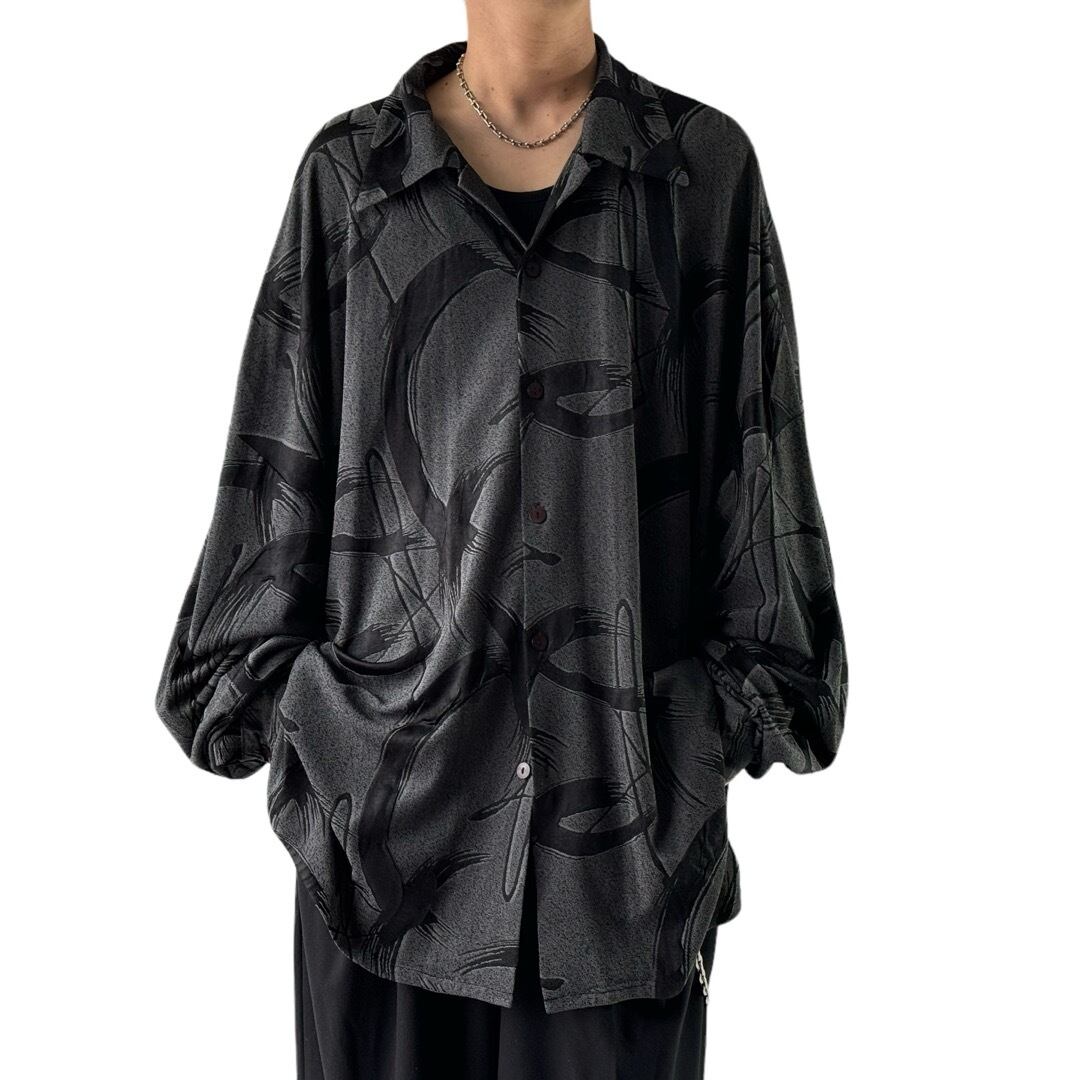 ♾silversilk♾ "超"over sized open collar art design shirt -SIZE 5XL-