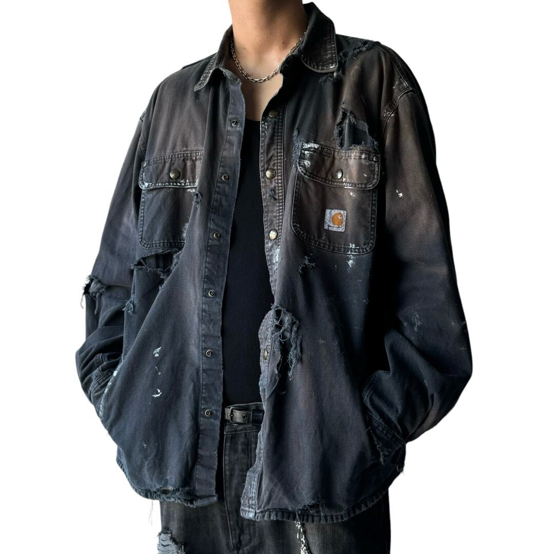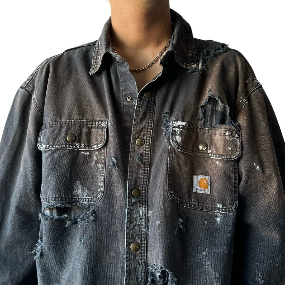 ♾OLD carhartt♾ 〜ultimate boro〜 faded crush paint design hand painting vintage duck jacket size L