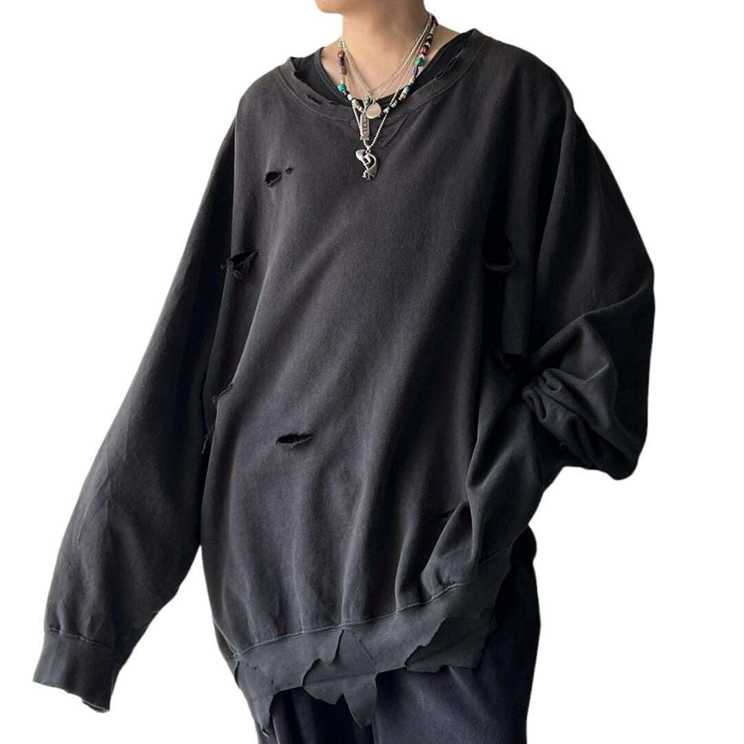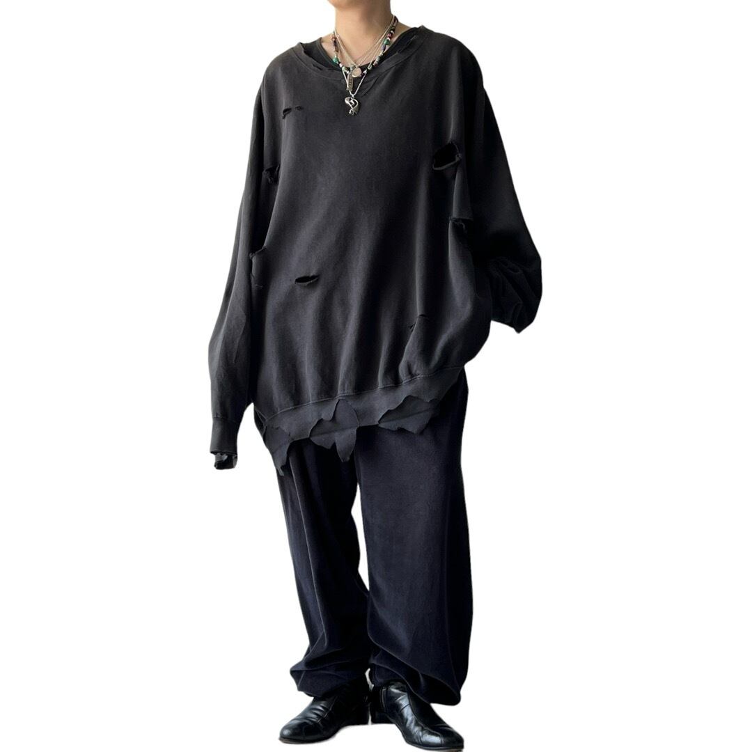 その中でもこのブランドの真骨頂でもあるオーバーサイズな振り切りビッグシルエットにクラッシュデザインがかなり魅力的な1枚✨