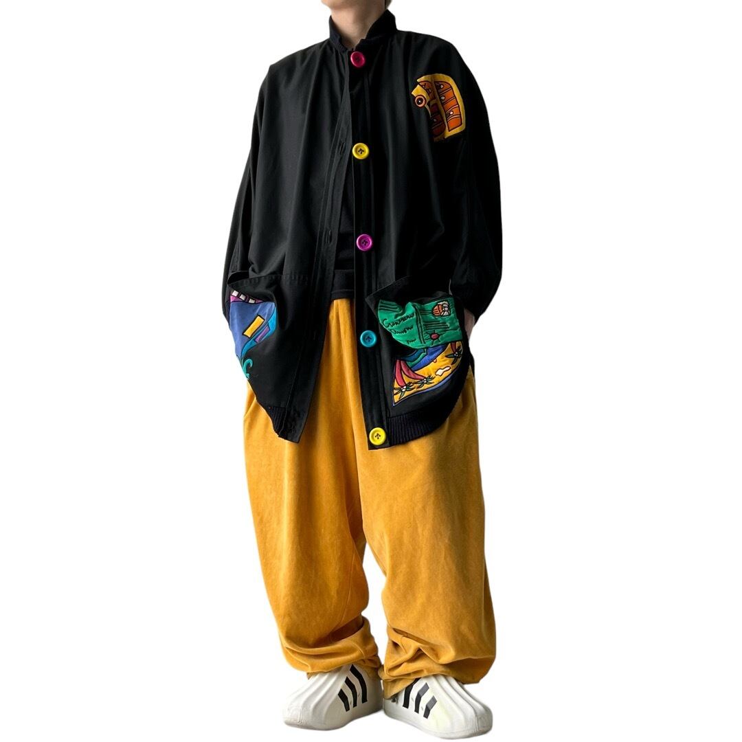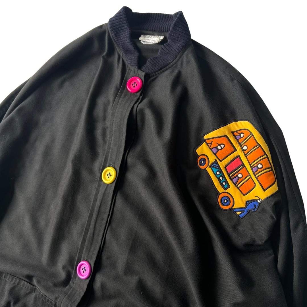 Special… 80s vintage 【SILK SCAPES】 Embroidery Design Dolman sleeve Long Blouson