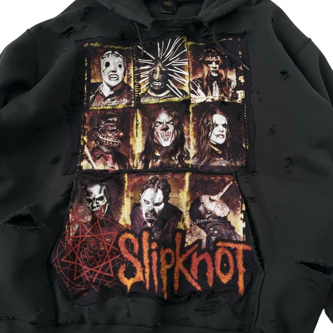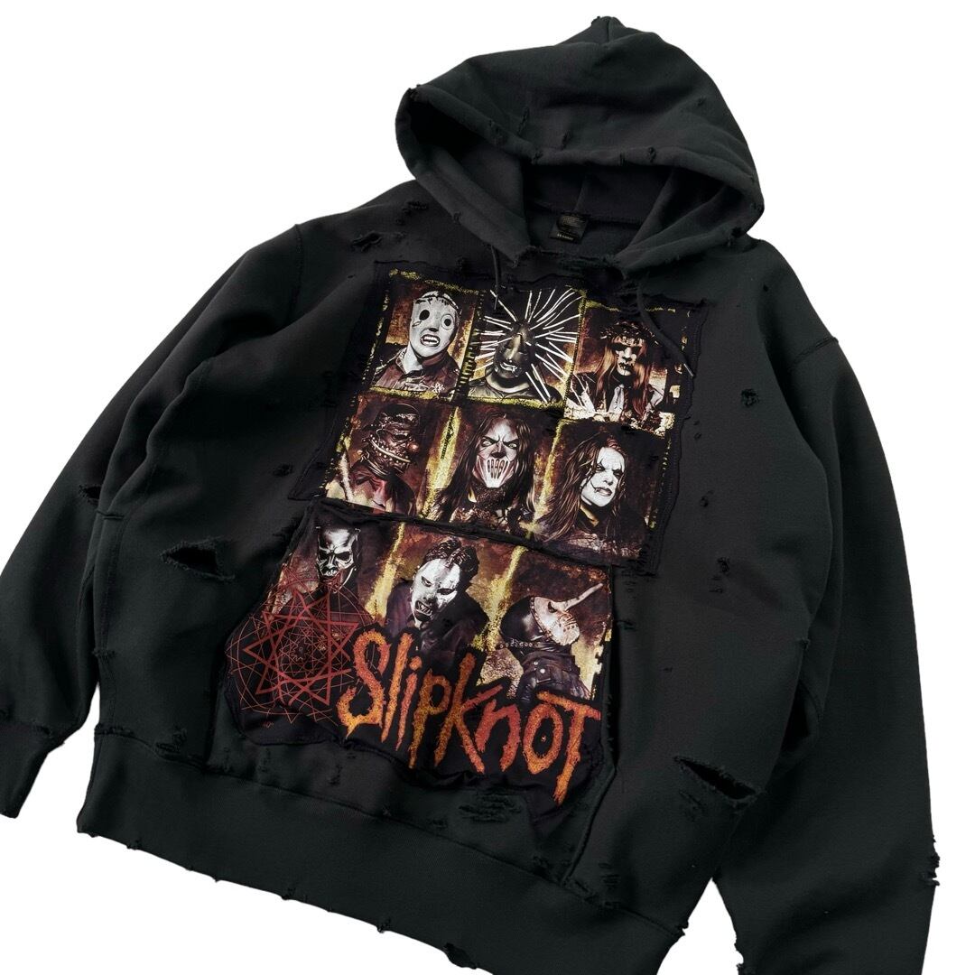 雰囲気抜群でSlipKnotのデザインパッチを両面に施しダメージを加えたデザインジップフーディ‼︎‼︎