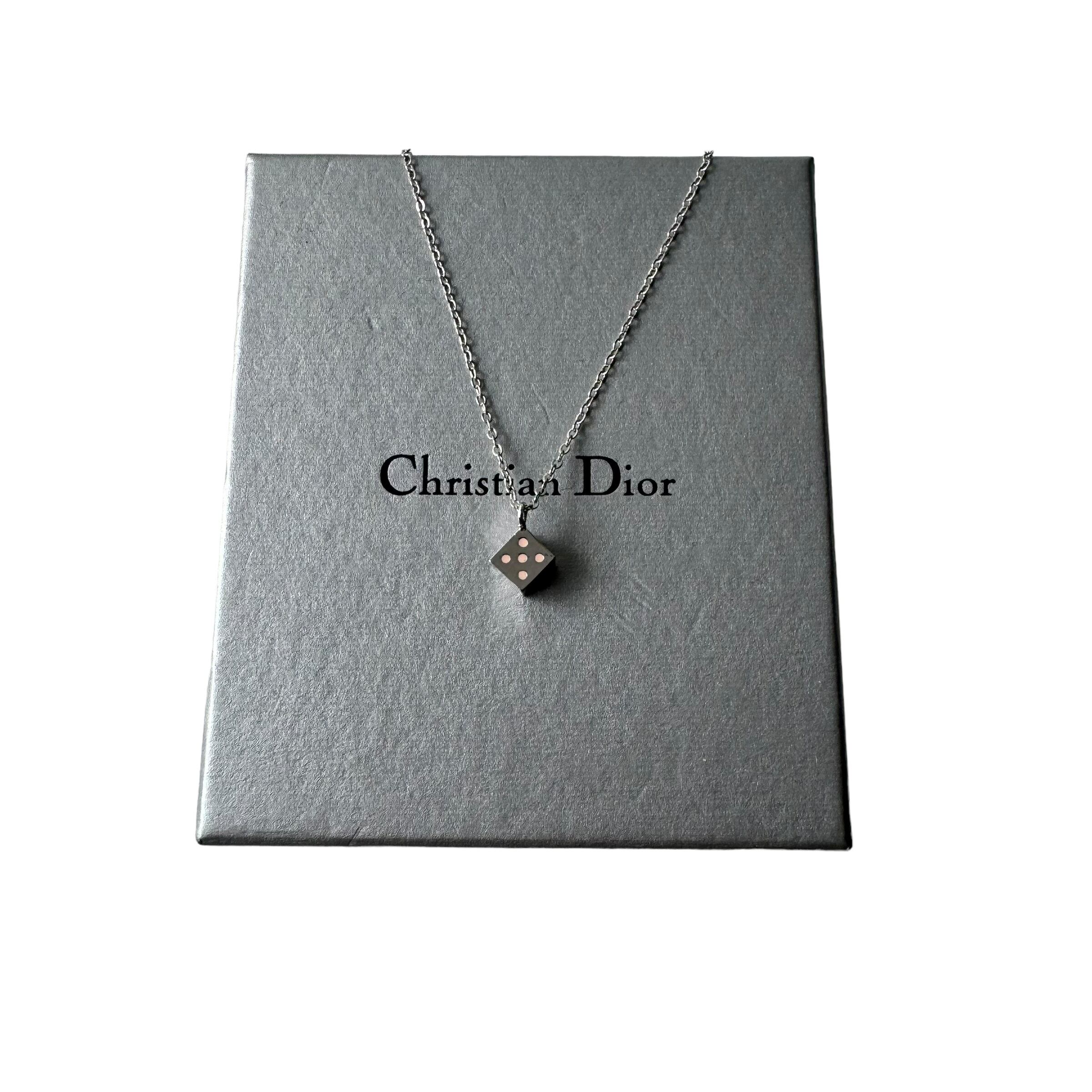 ♾ChristianDior♾ dice cube necklace -Silver×Pale Pink-