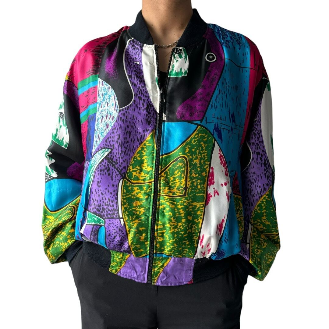 ヴィンテージピカソデザインのアートな世界観に包まれた総柄が洋服としても作品としても素晴らしいジップアップブルゾン入荷!