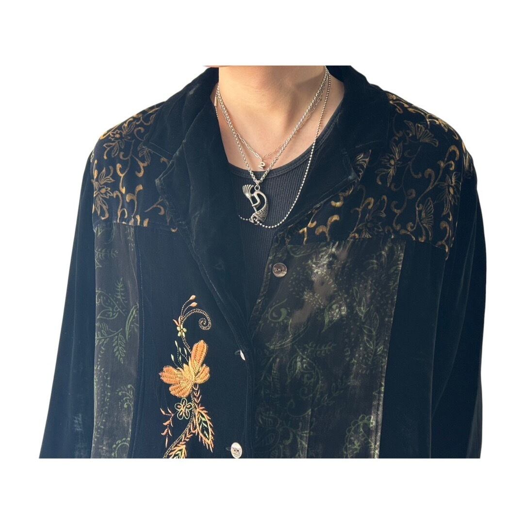 【CHICO'S DESIGN】 Switching Velours patchwork Embroidery Jacket