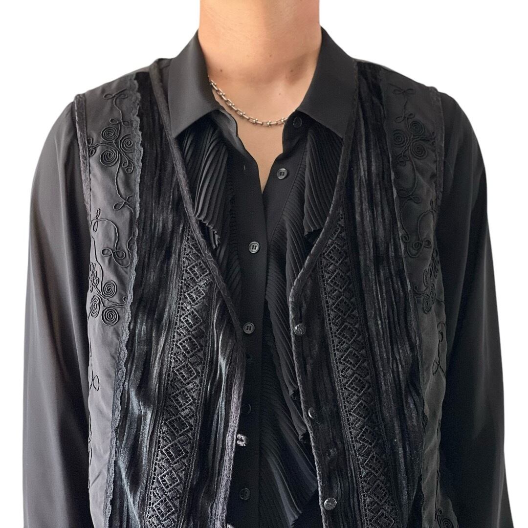 フロントに素材の切り替えやパイピング、細やかな刺繍など秀逸なデザインが行き届いたモードベスト!!!