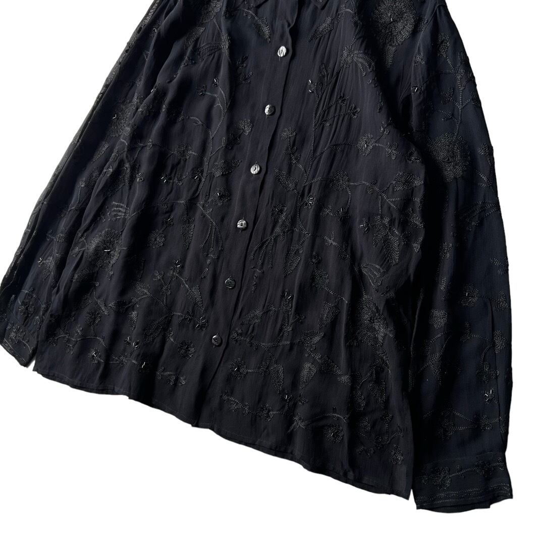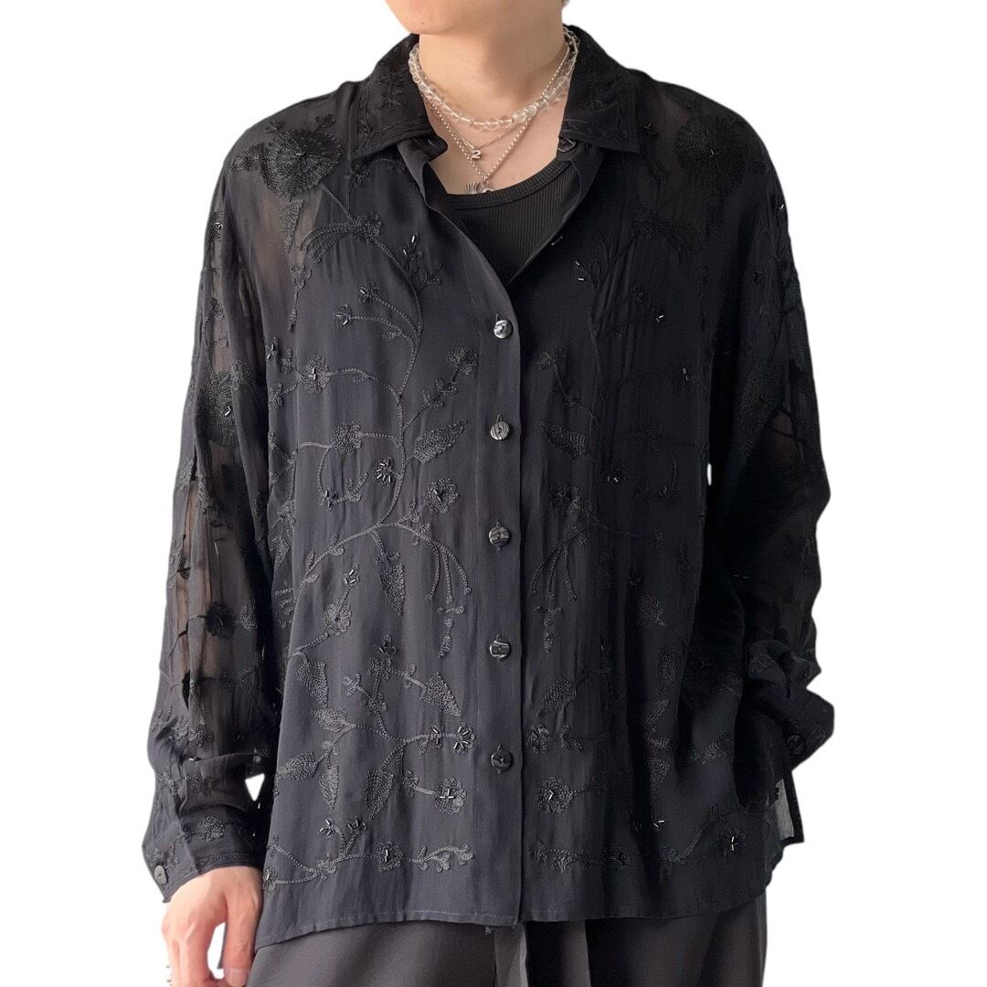 Chain Embroidery Decoration Sheer Pattern Shirt
