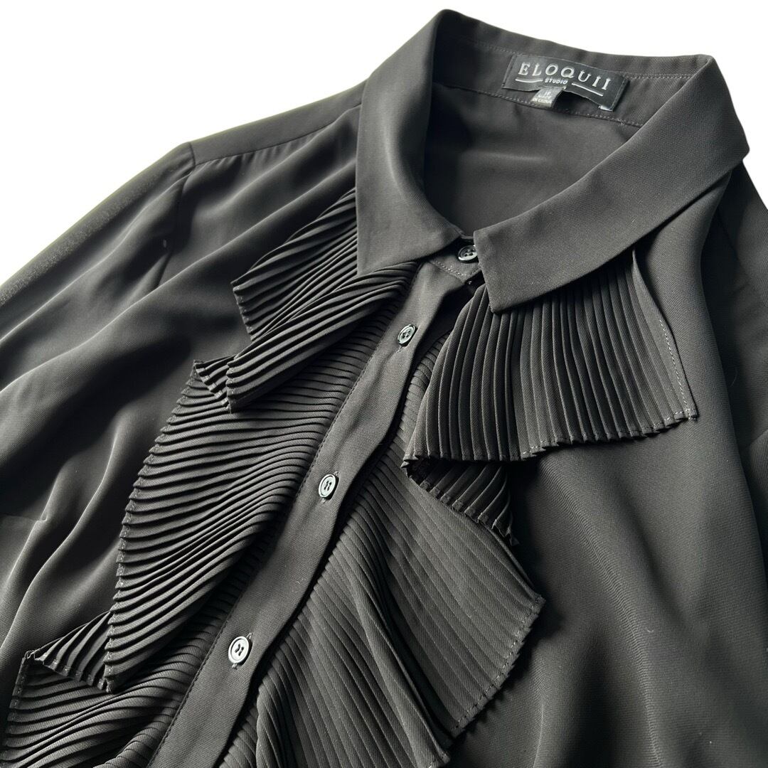 【ELOQUII STUDIO】Pleats frill docking dress shirt