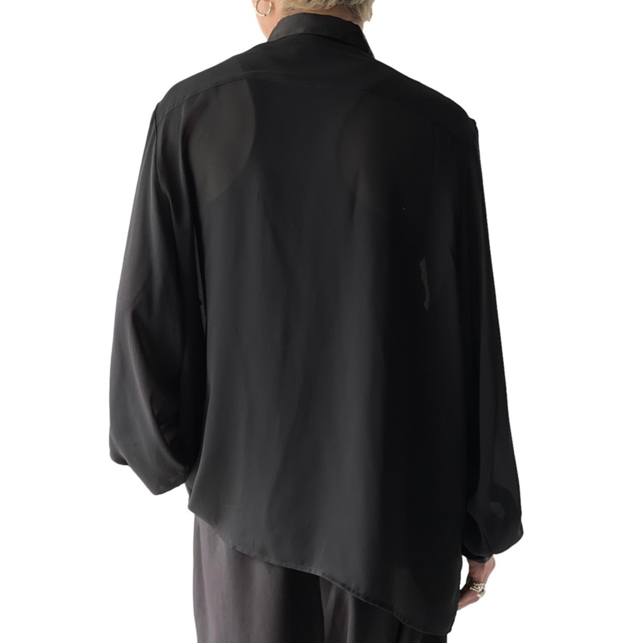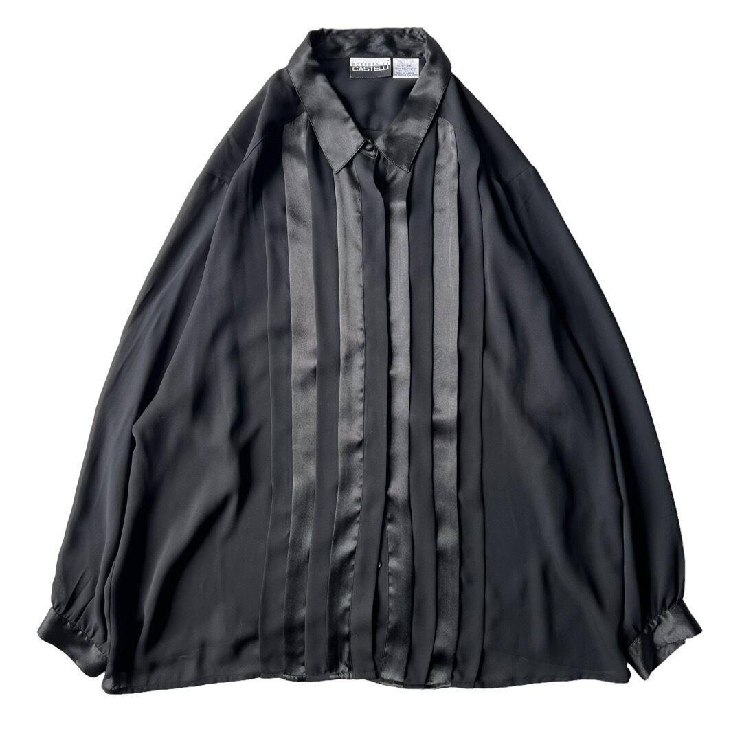 【ROBERTA DI CASTELLI】Satin Swiching Pleats Design Dress Shirt