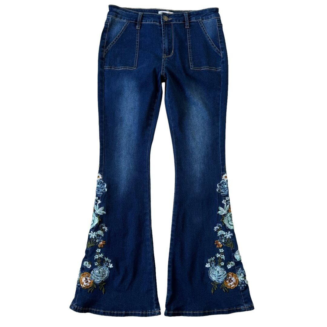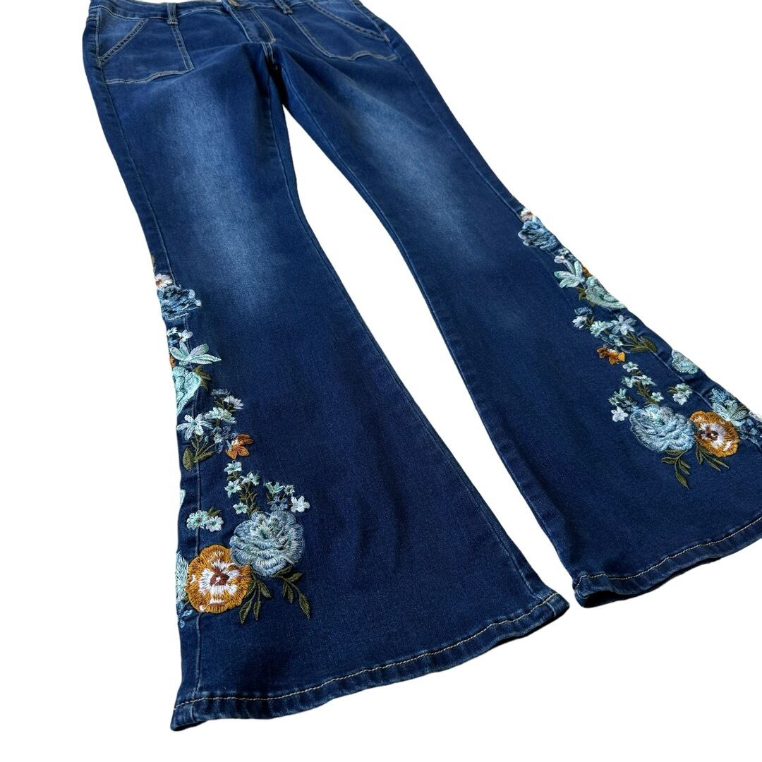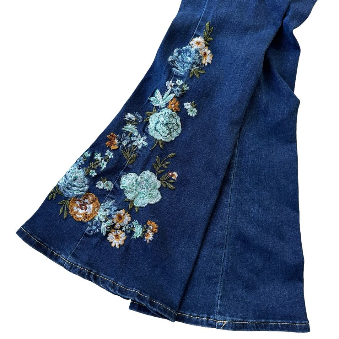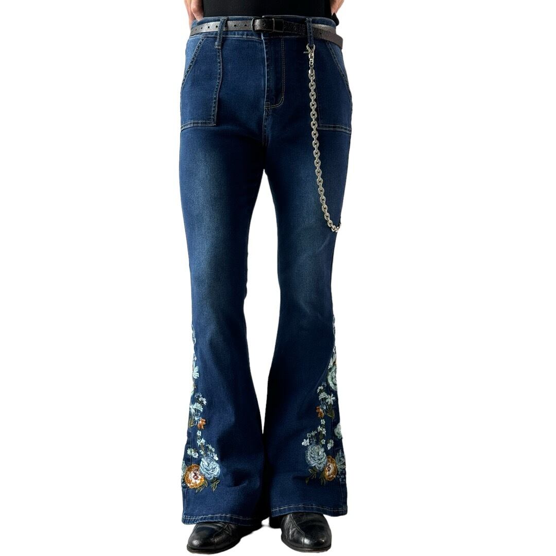 ♾️Bamboo♾️ Flowers embroidery flare denim pants