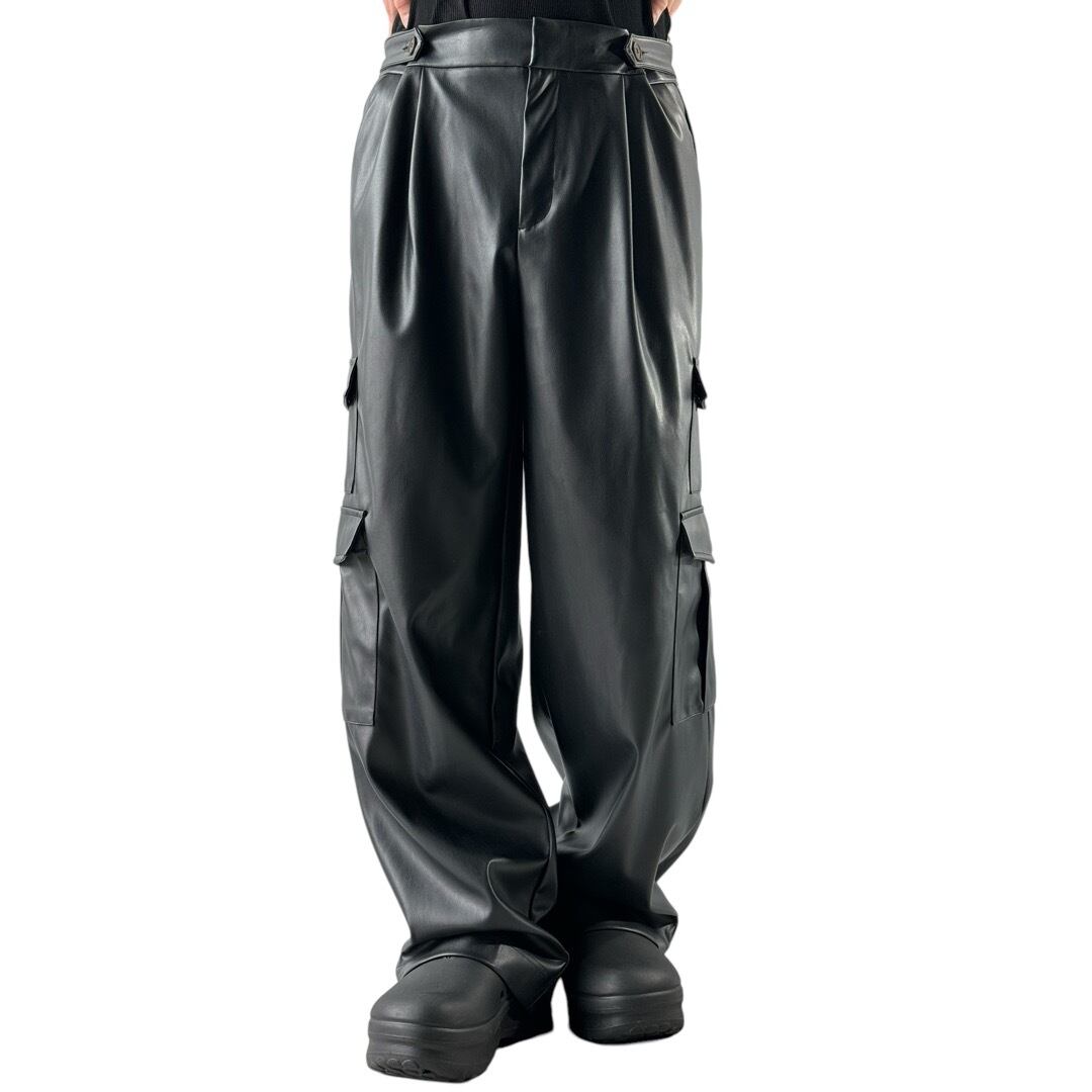 ♾️a•new day♾️ Double pockets PVC leather cargo pants