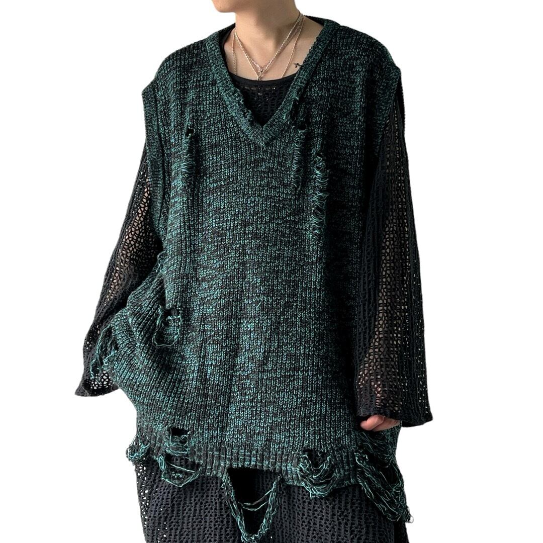お洒落をプラスできるオーバーサイズのダメージニットベスト✨