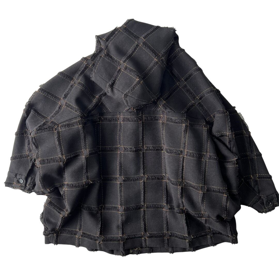 ポンチョタイプの形、切りっぱなしのパッチワークのようなデザイン素材感もかっこいい☺️☝️