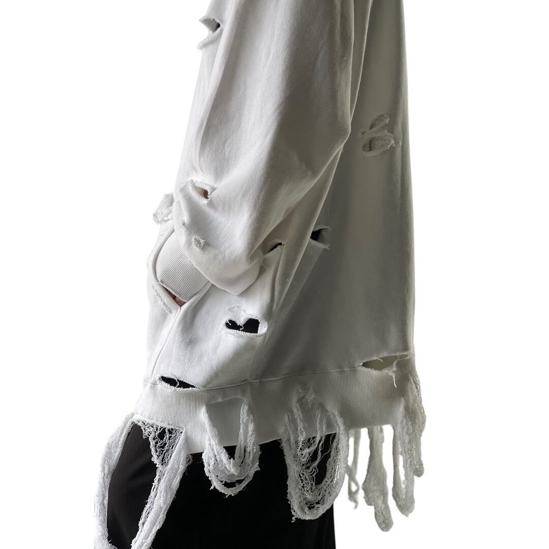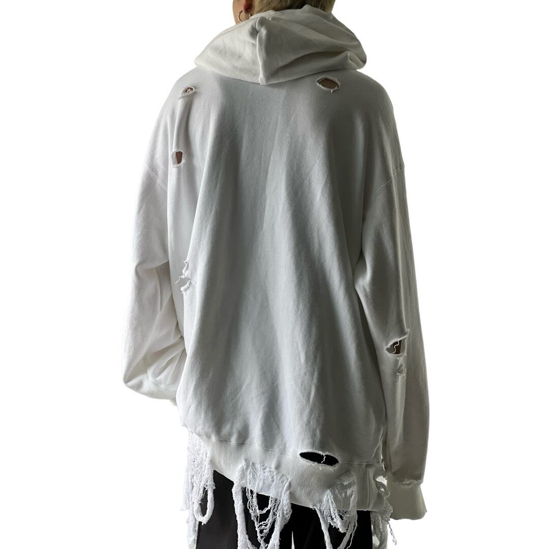 ダメージ加工を施したインパクトある仕上がりが超クールなクラッシュフーディー。