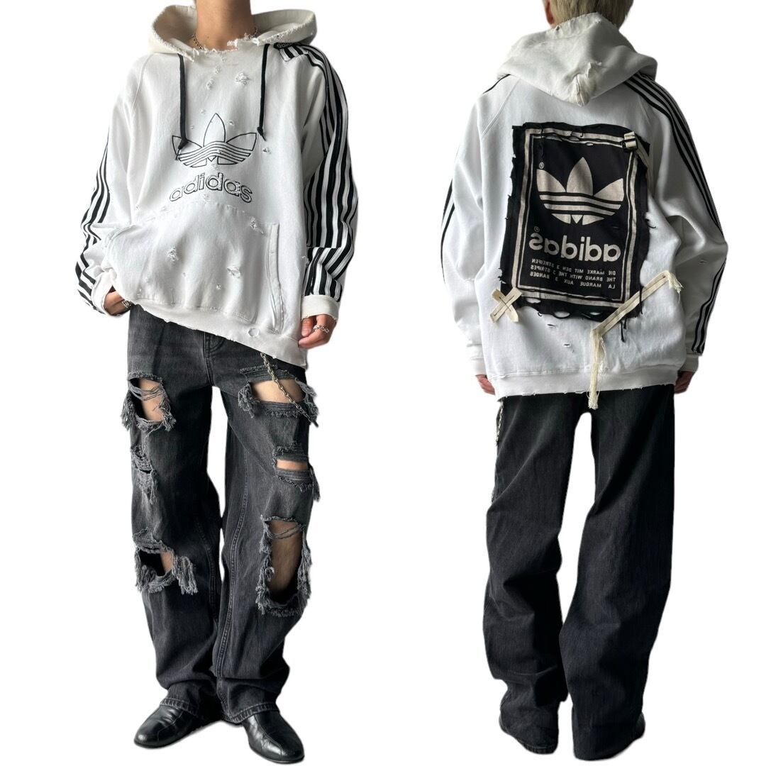 ♾️80's adidas♾️ Remake custom&crush design hoodie MADE IN U.S.A size XL