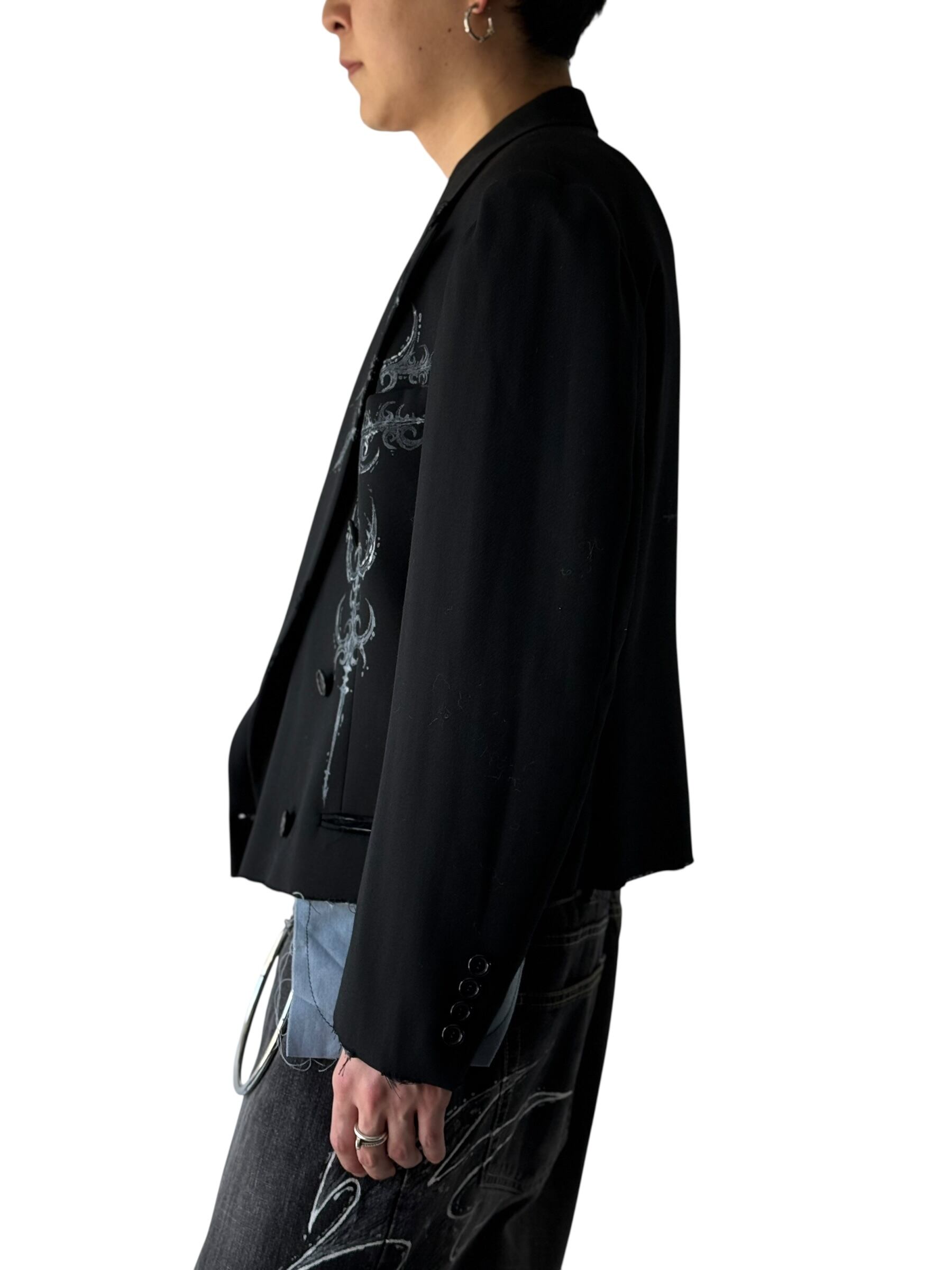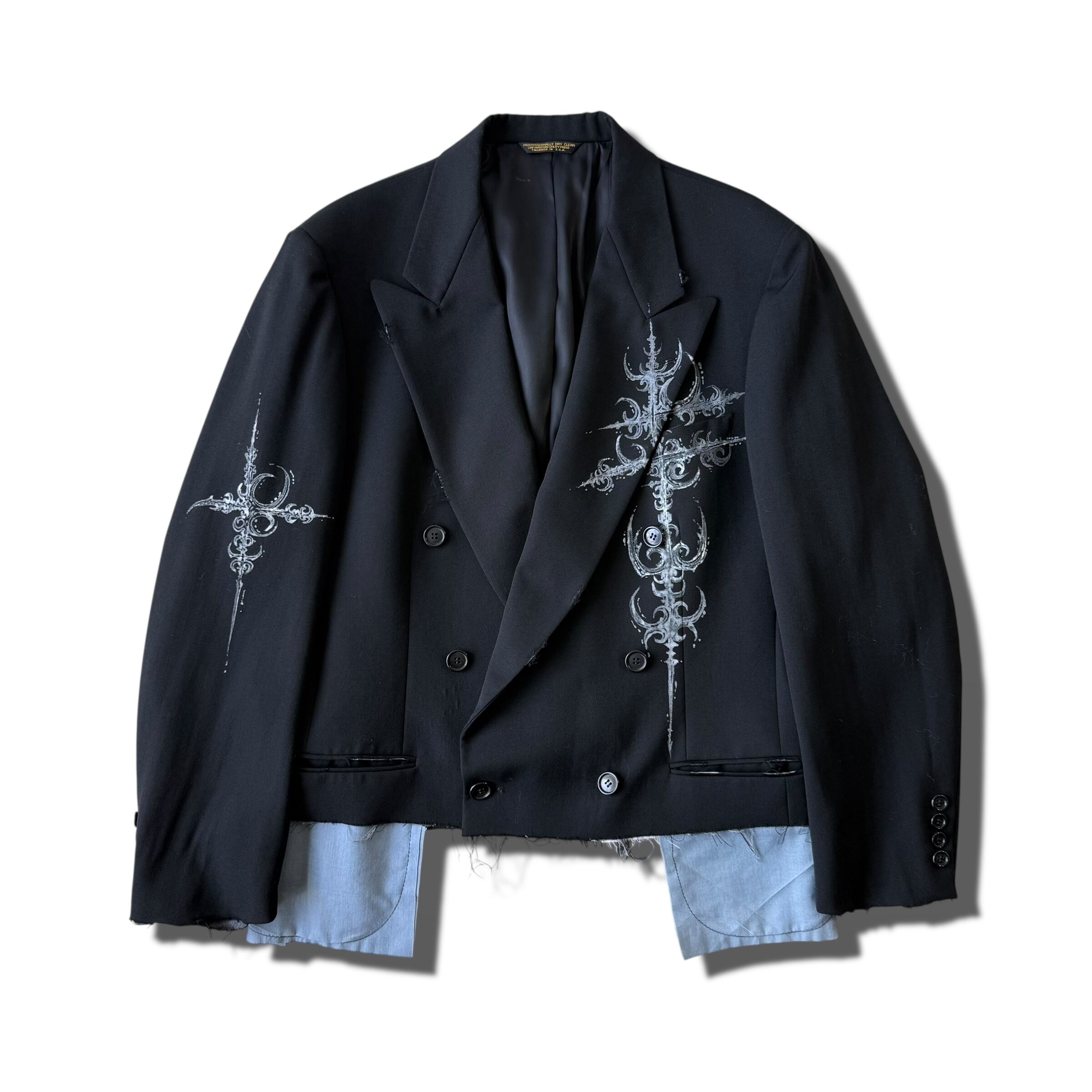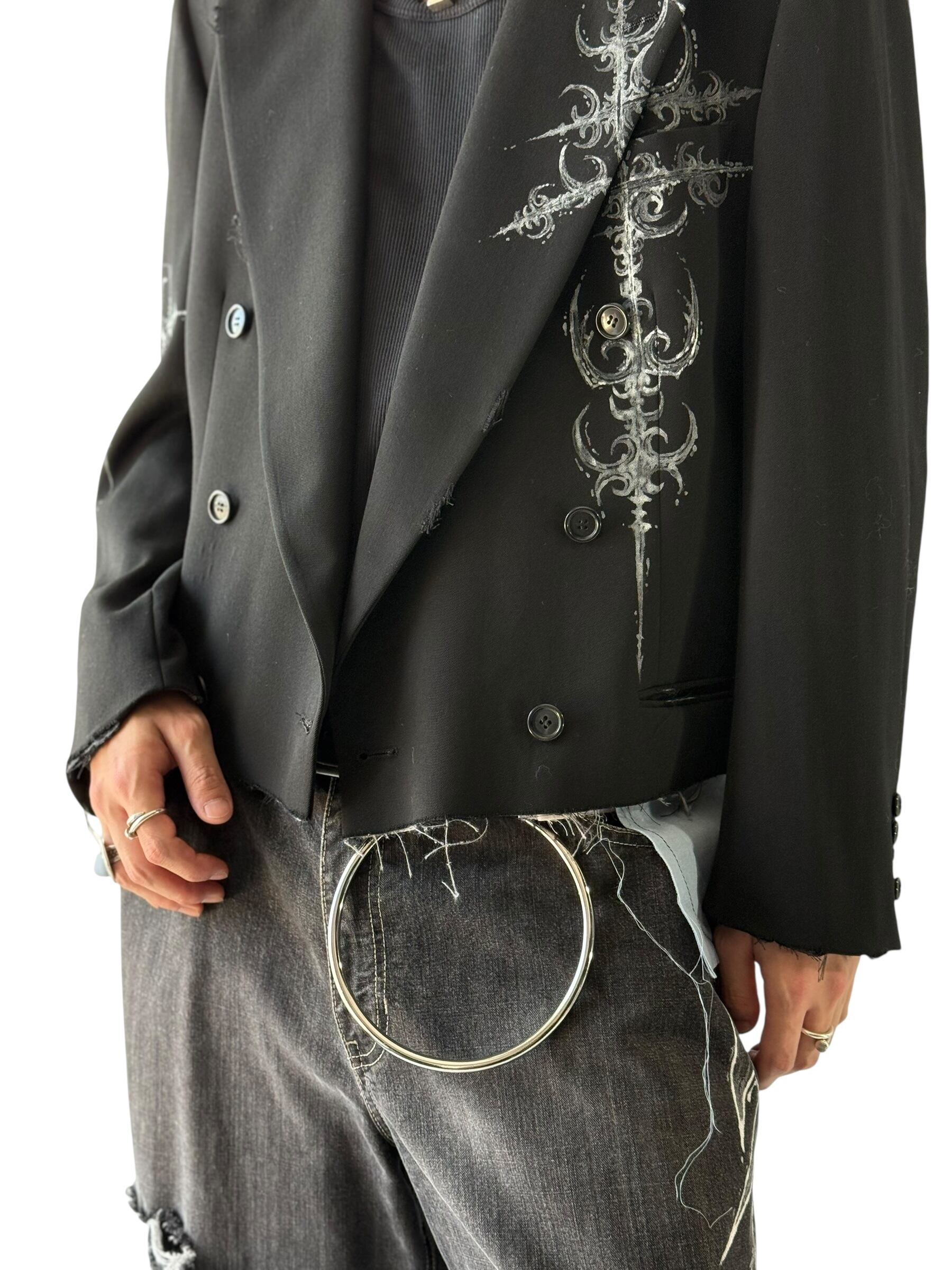 【INTERNATIONAL PASSPORT】 "Distressed short custom" hand drawing design double brest tailored jacket