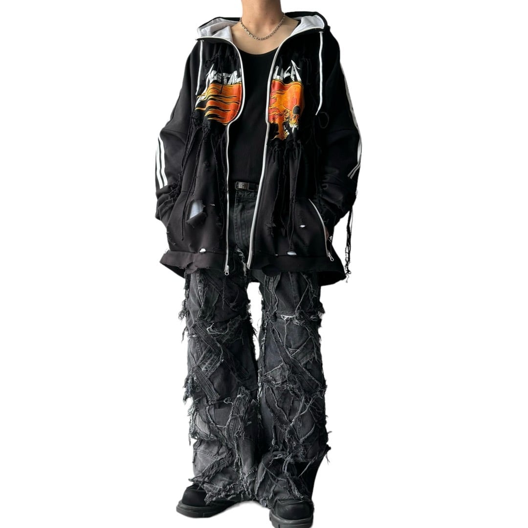 ♾REMAKE DESIGN USED♾ "METALLICA" Crush × Custom design over sized zip hoodie