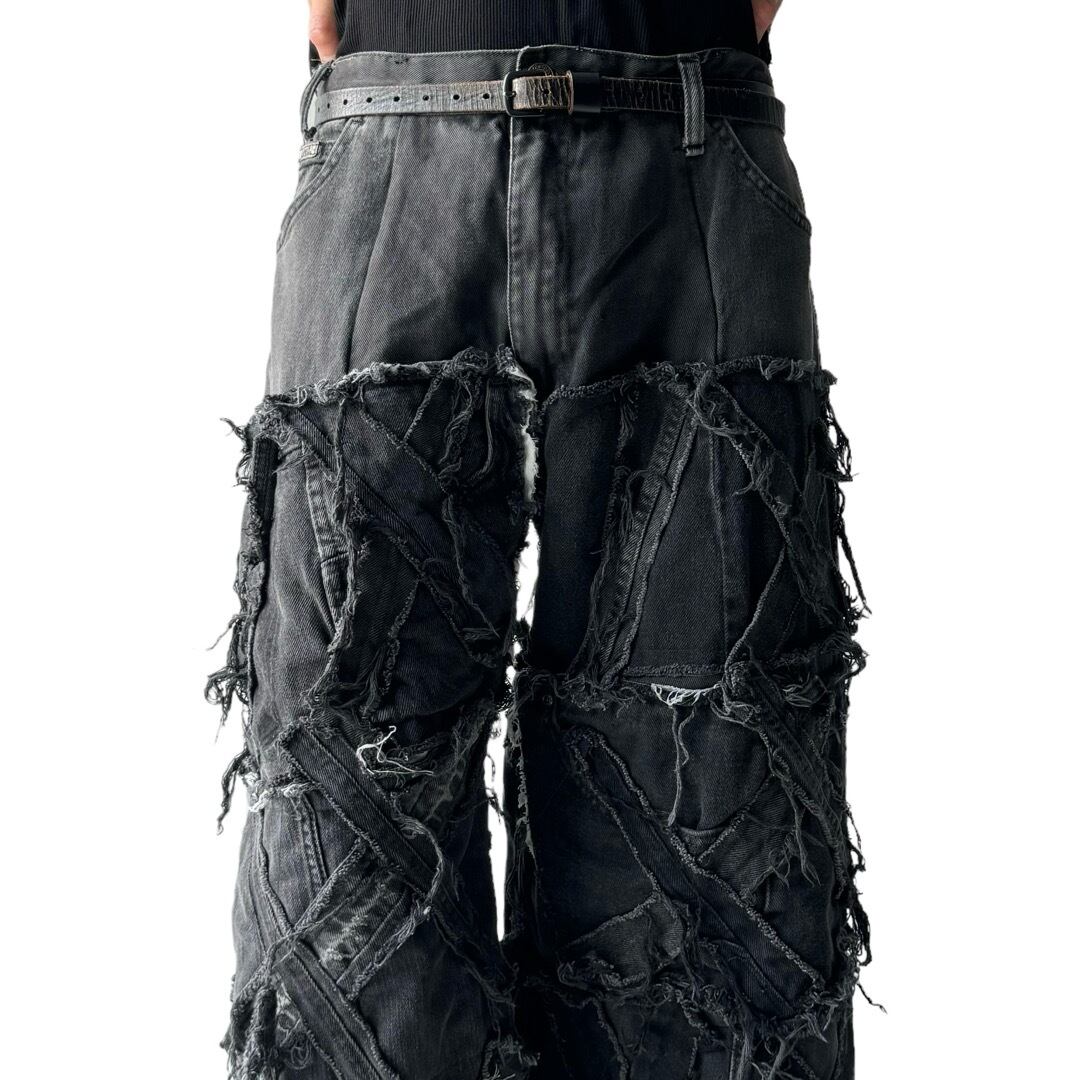 ♾REMAKE DESIGN USED♾ Reconstruction custom mega wide black denim pants