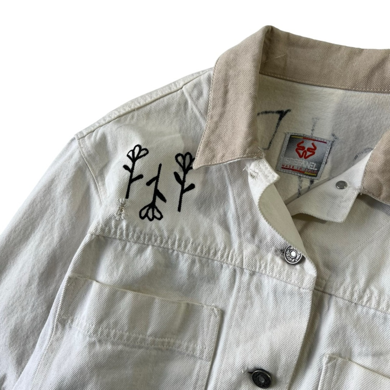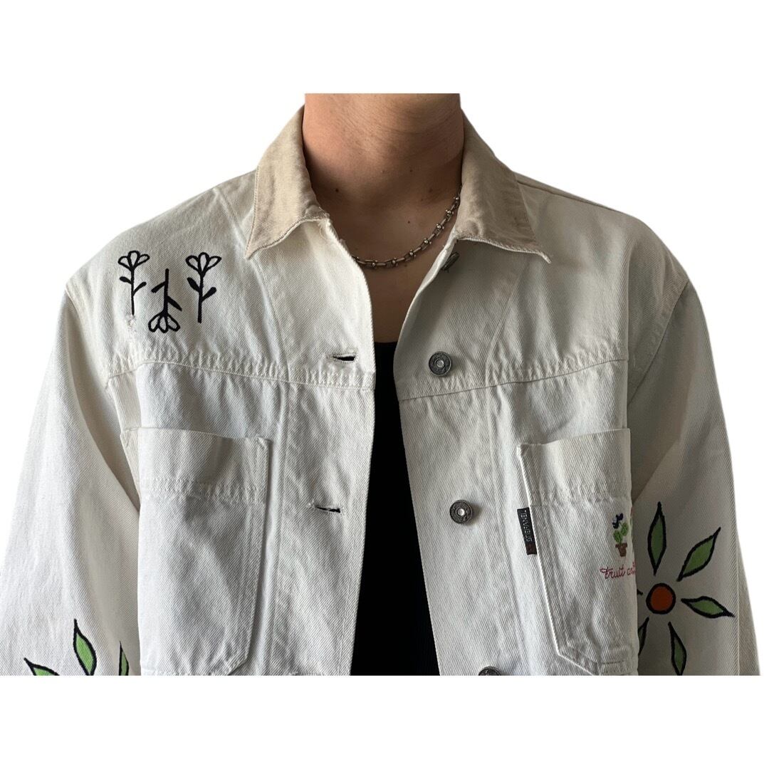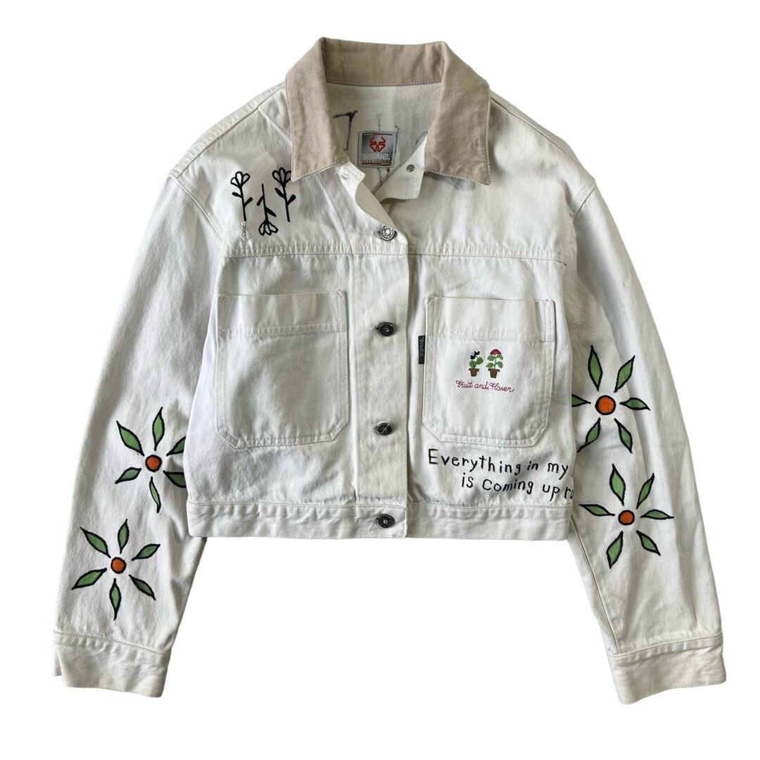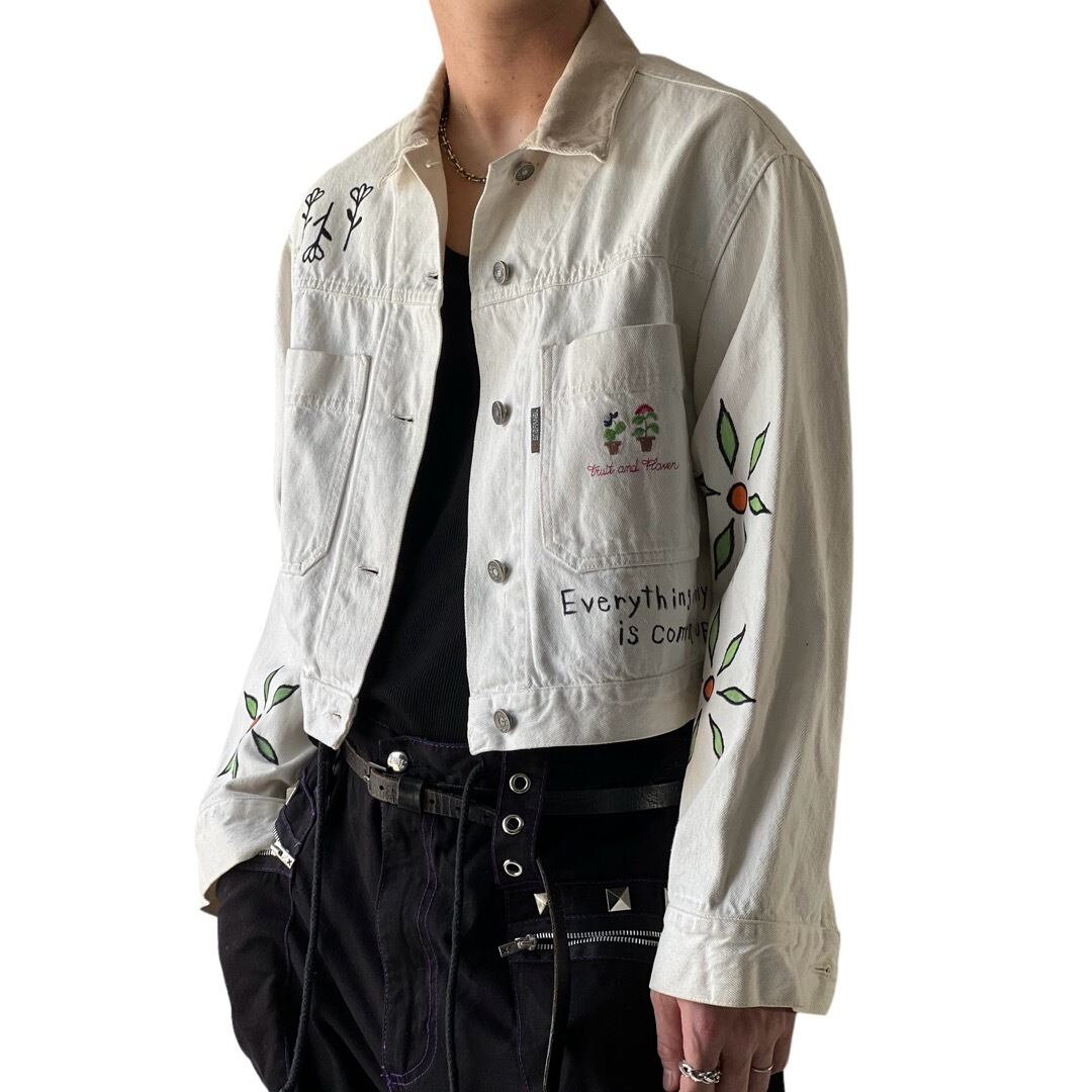 インパクト抜群なキリストモチーフなハンドペイントに両袖と胸刺繍とワンポイントも最高なオンリーなデザインが目を引くショート丈ジャケット!!