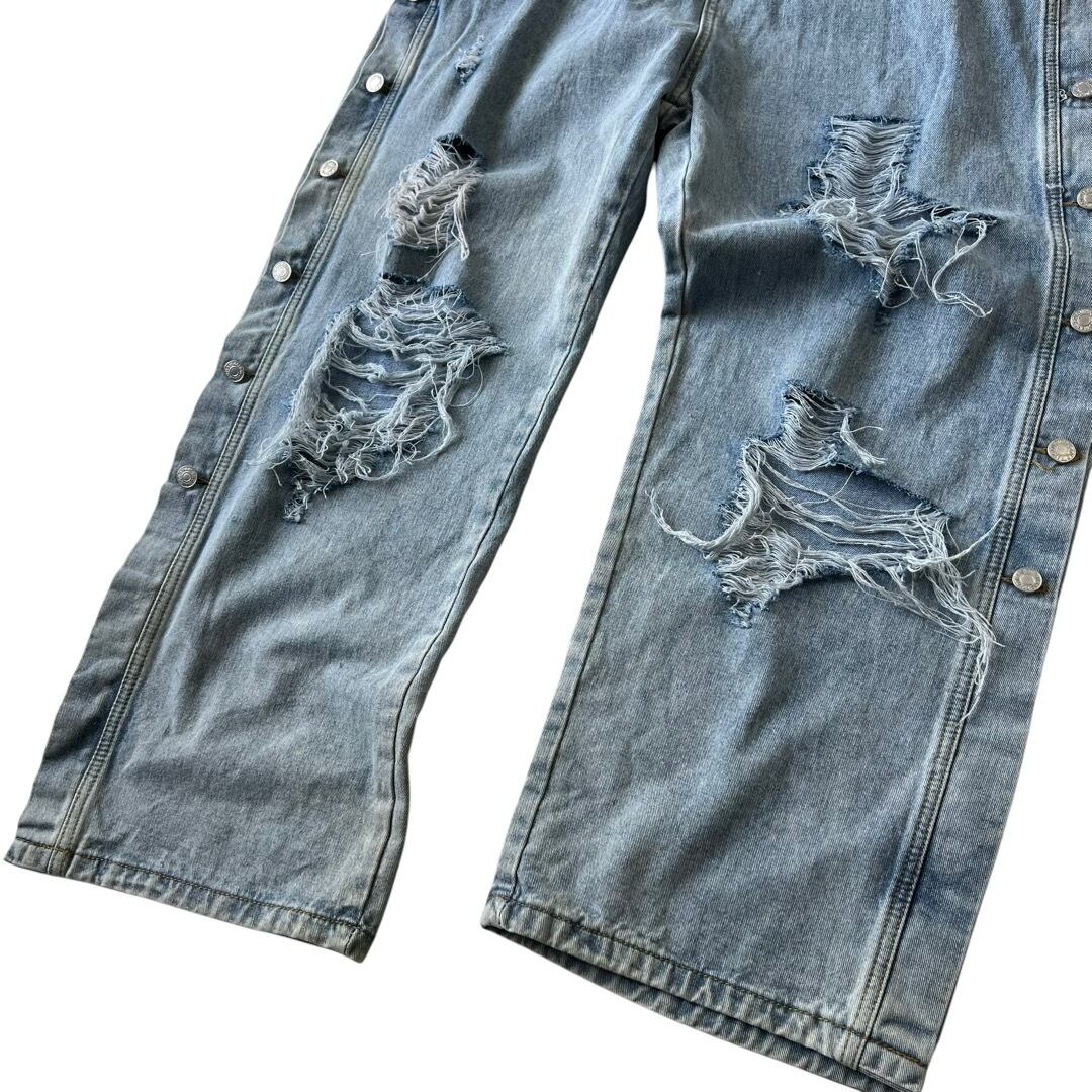 一点モノ感満載のデザイン古着でオリジナルなカスタムデニム‼️ お探しの方も多いダメージデニム…