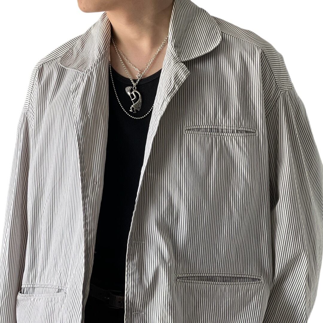 シャツジャケットのような雰囲気にボリューム感のある変形したシルエットが魅力的なアイテム◎