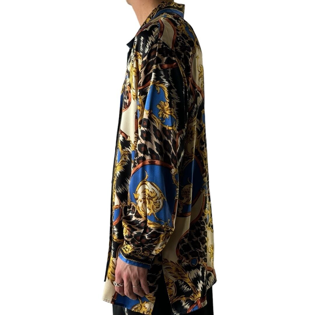 ♾️Corey B♾️ Scarf pattern silk over sized shirt