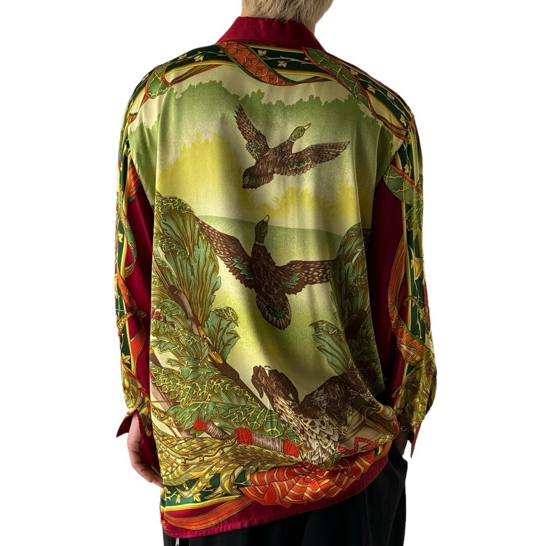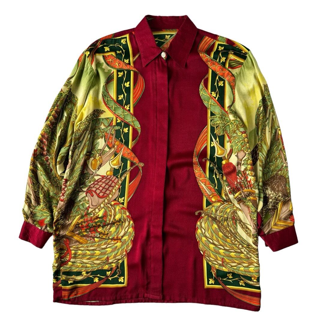 HERMESを彷彿させるようなスカーフパターンシャツ。