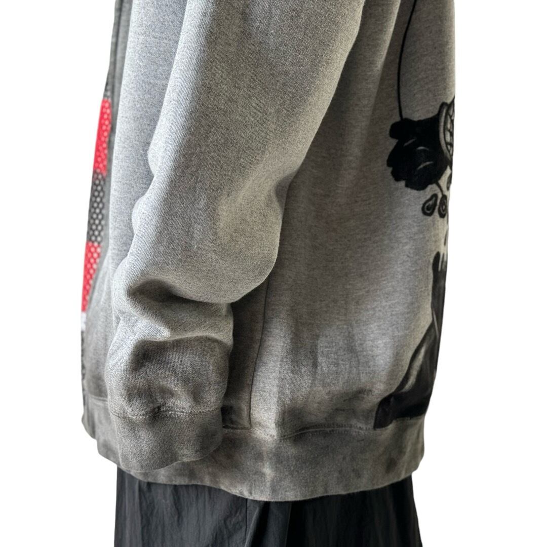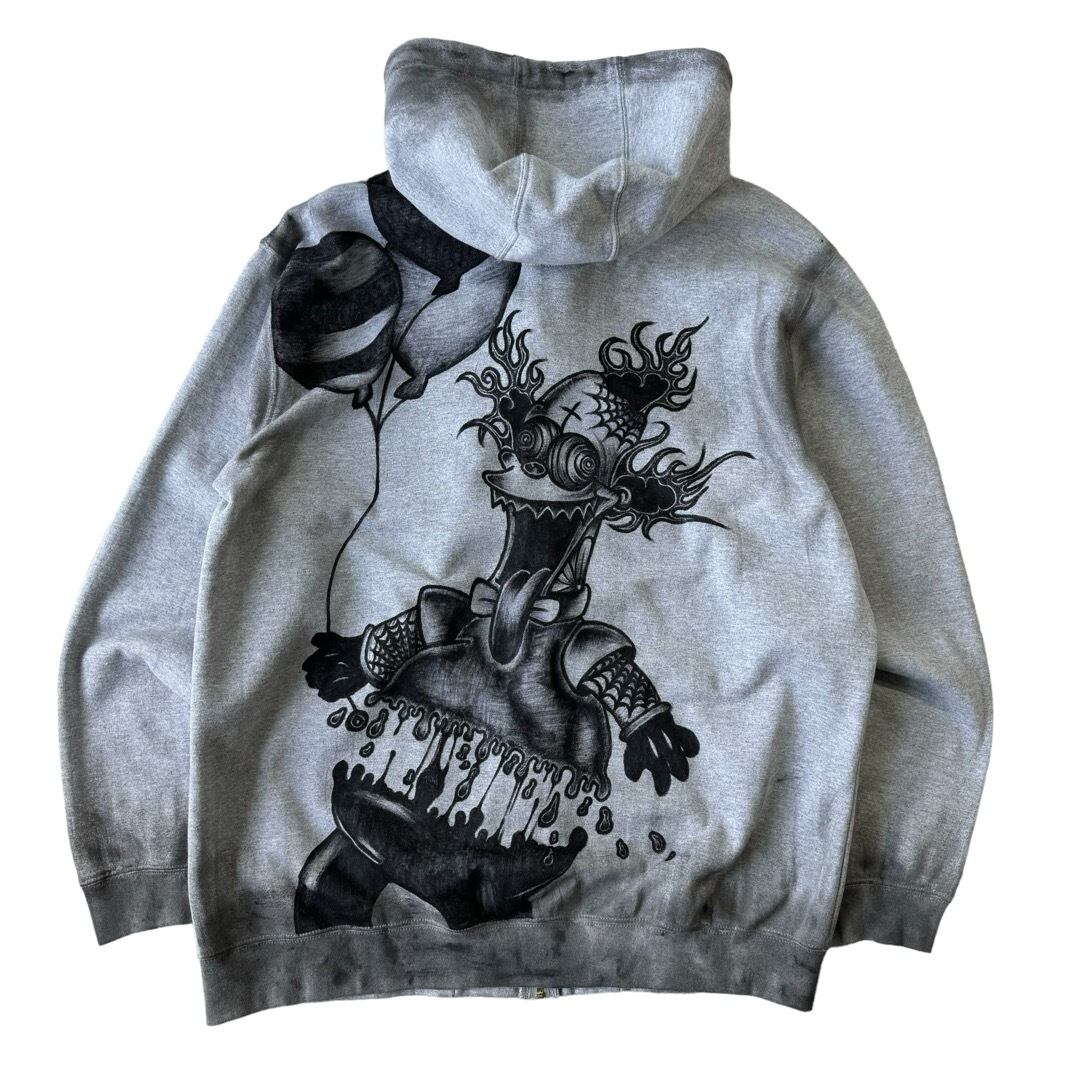 carharttのグレーボディのジップパーカーの胸にトライバル、背面にモンスターチックなピエロを描いたオンリーワンなアイテム‼︎‼︎