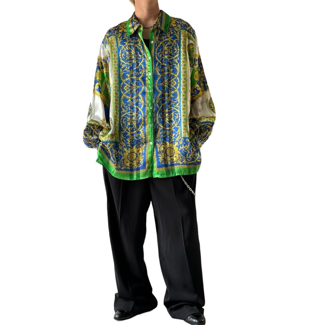 青×緑×白が非常に映えるお洒落なスカーフパターンシャツ✨✨