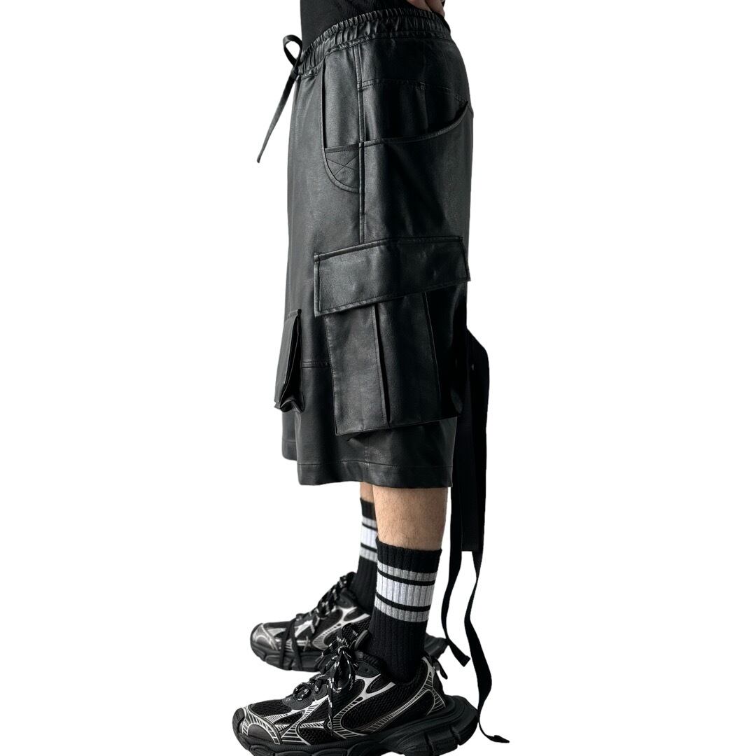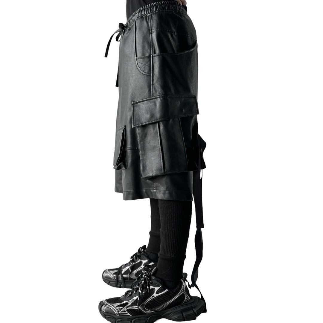 ♾WIZZARD♾ layered design buggy wide pvc leather cargo shorts