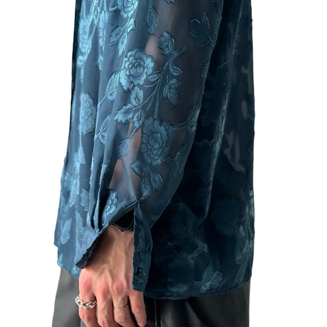 flower patterned design sheer shirt