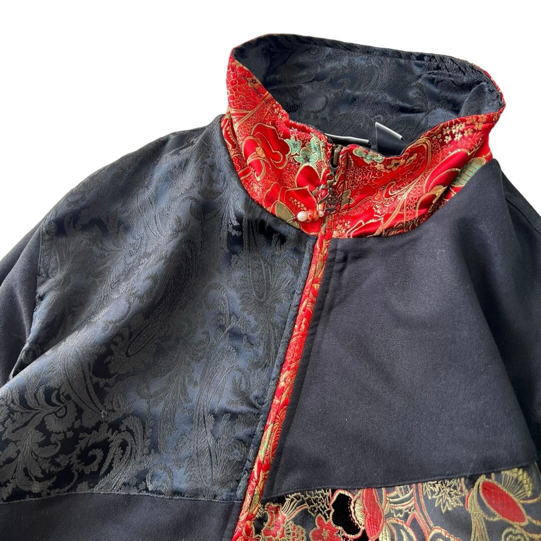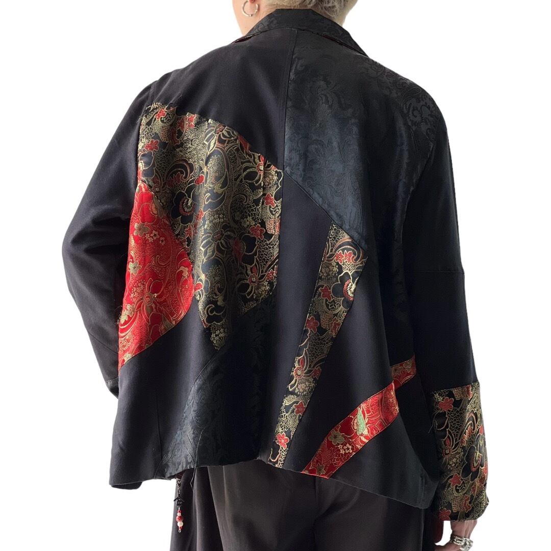 パッチワークの柄は和の要素もありつつ、トラックジャケット感覚で羽織れる形。