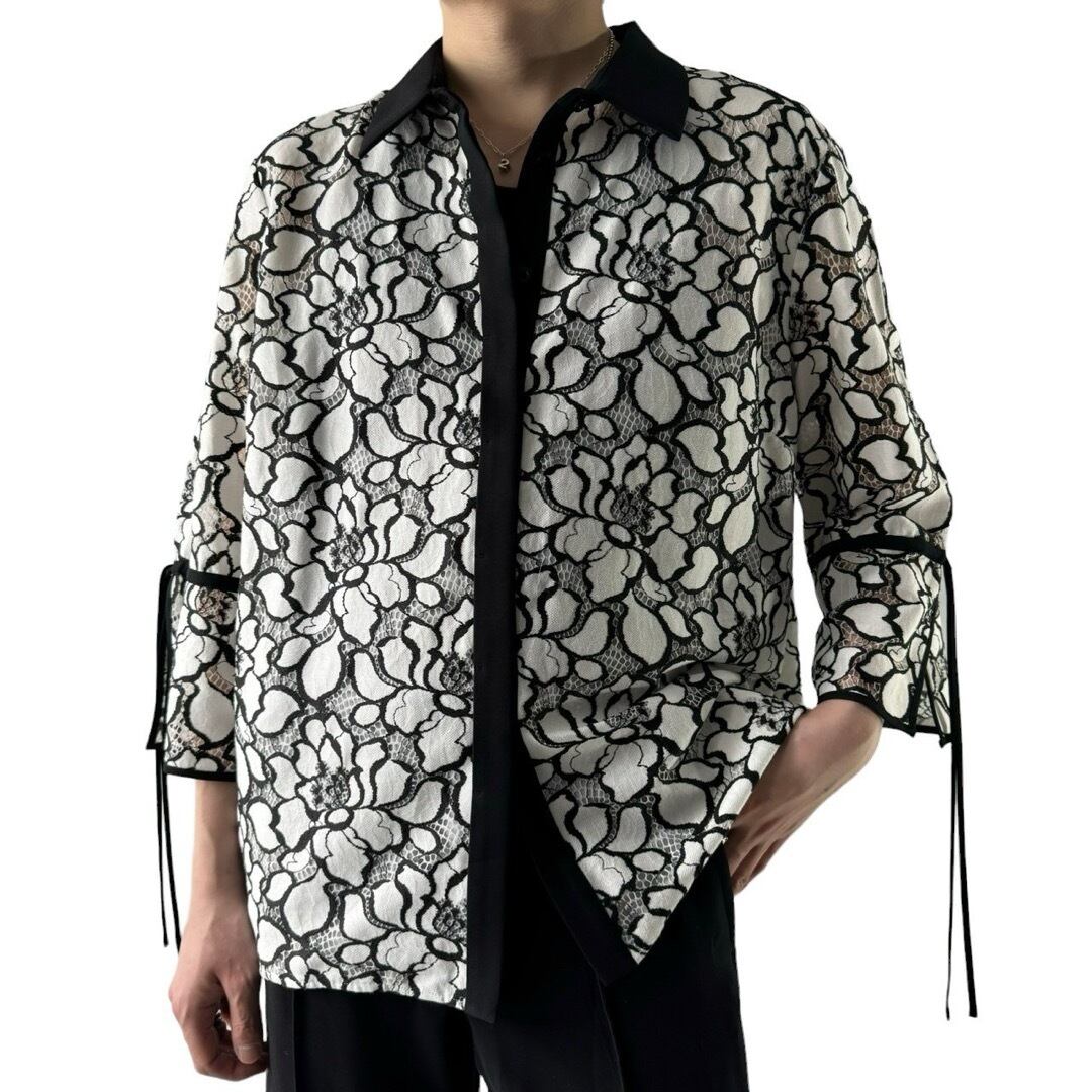 ボディ全体が究極カットアウトされたレース生地で袖部分をのぞいて裏地もついた仕立ても最高なドレスシャツ!!!